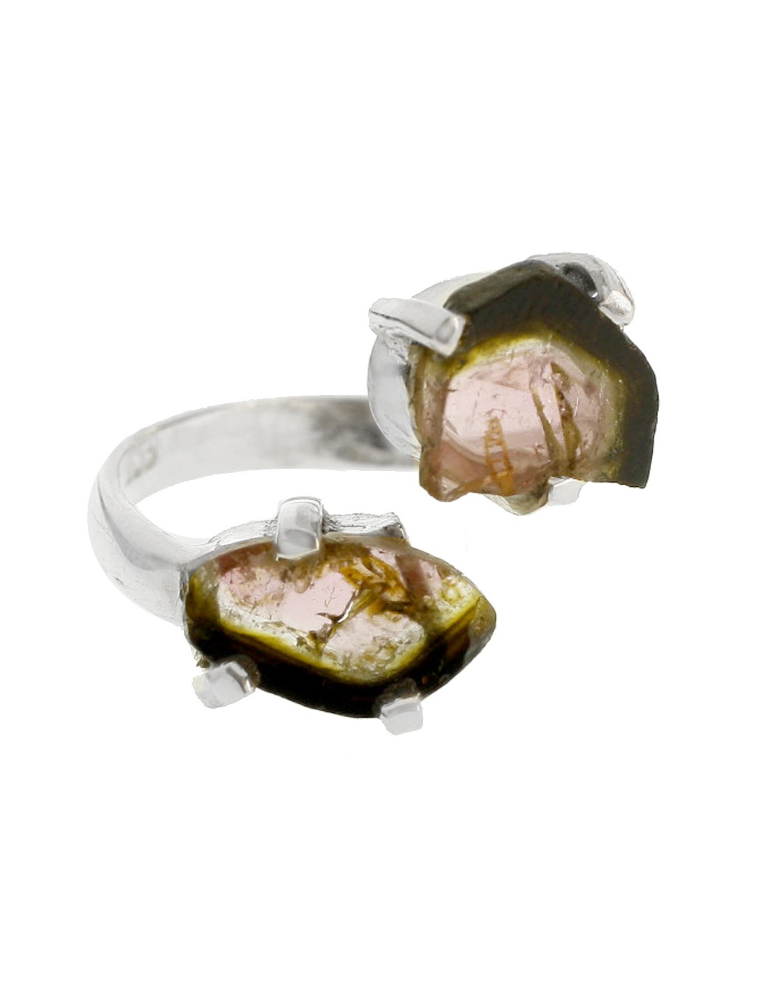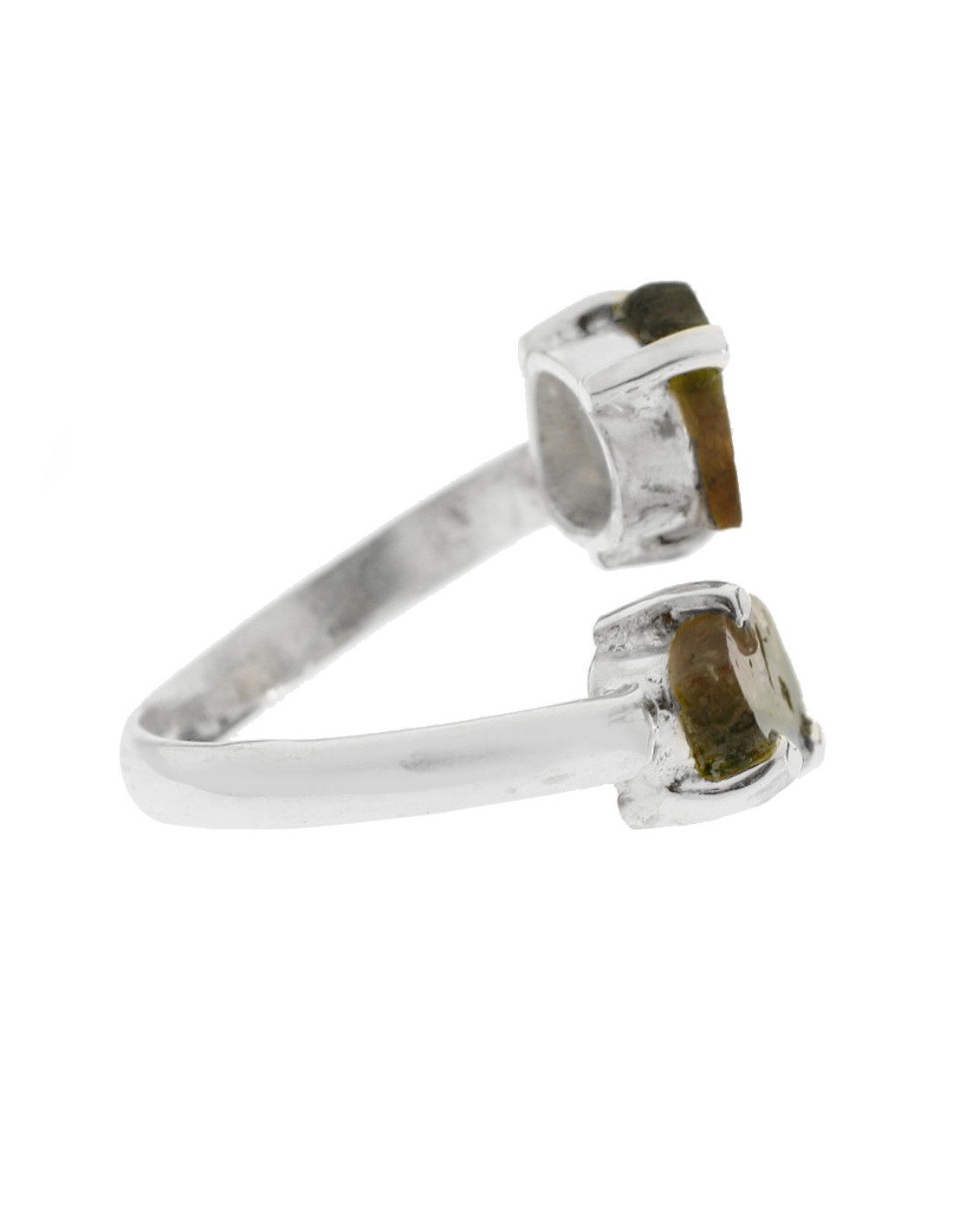 Anillo  ajustable en piedra natural de turmalina con forma libre Plata de Ley