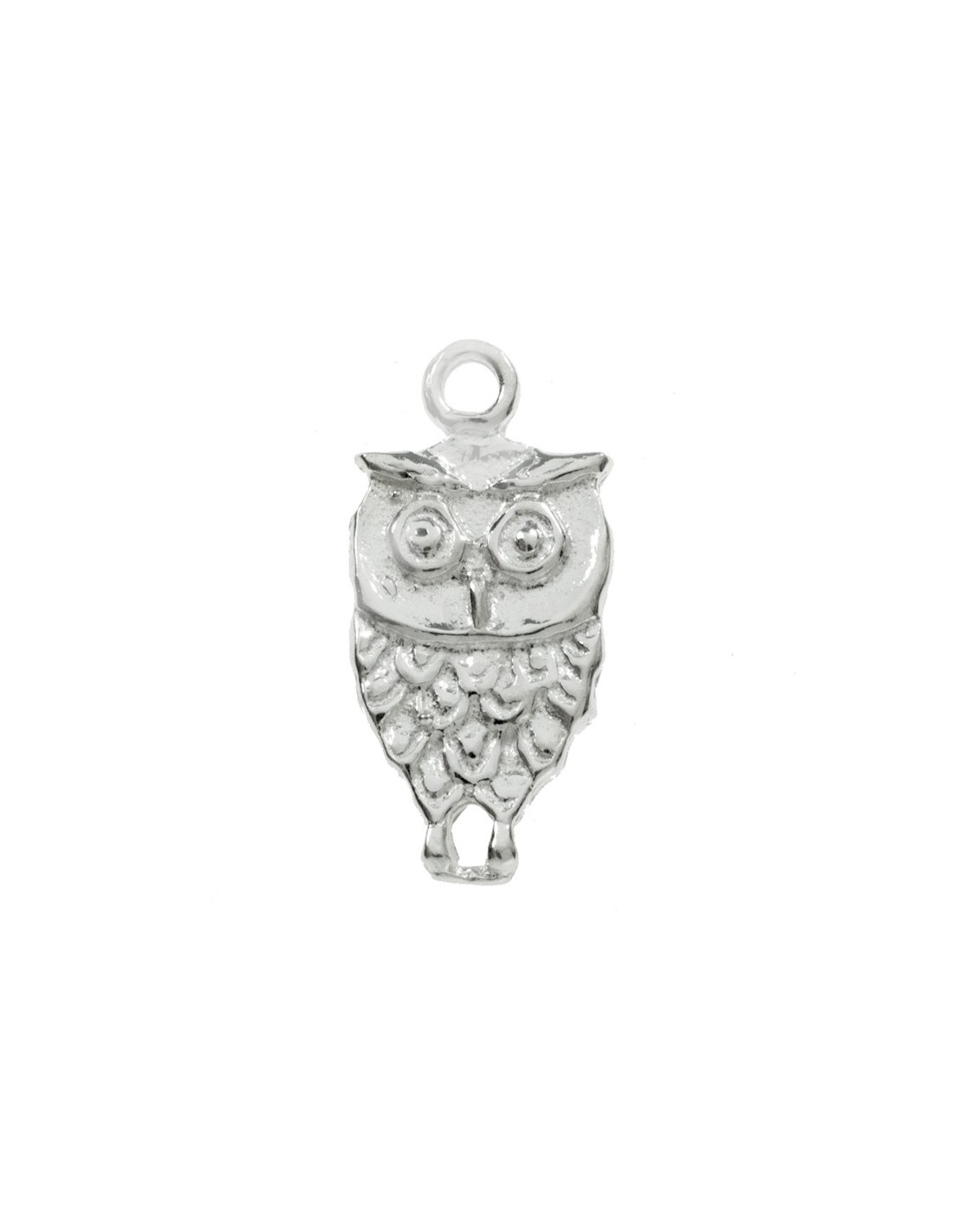 Abalorio colgante con diseño de búho con acabado liso, fabricado en Plata de Ley 925.