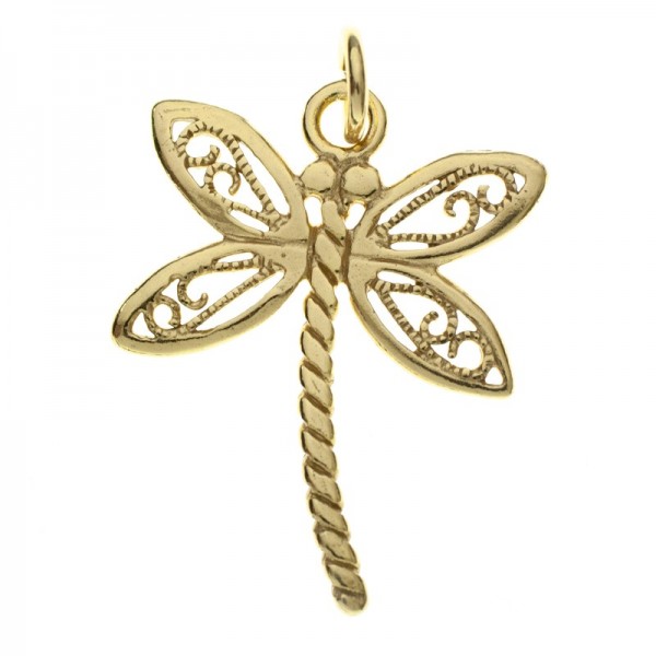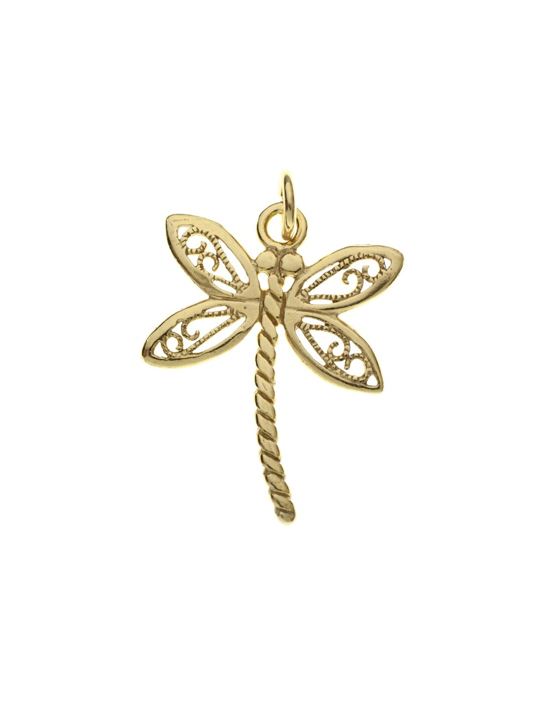 Abalorio colgante libélula chapado en Oro fabricado en Plata de Ley 925.