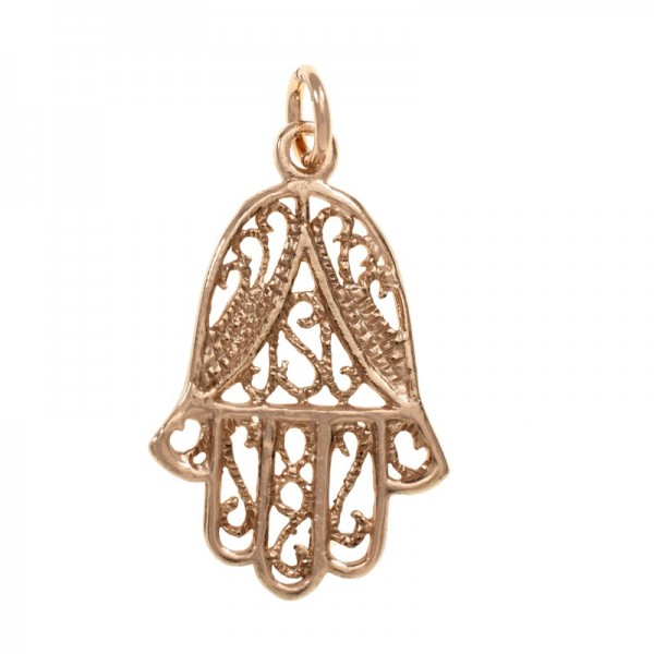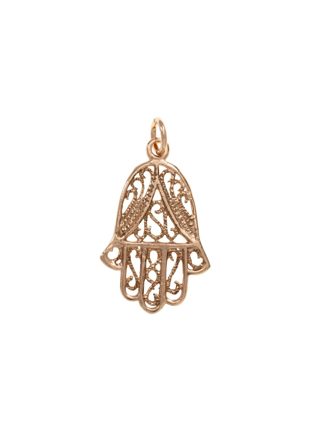 Abalorio colgante mano de Fátima chapado en Oro rosa fabricado en Plata de Ley 925.
