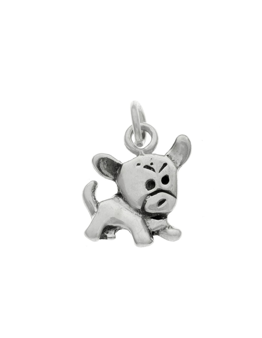 Abalorio colgante perro enfadado animado fabricado en Plata de Ley 925.