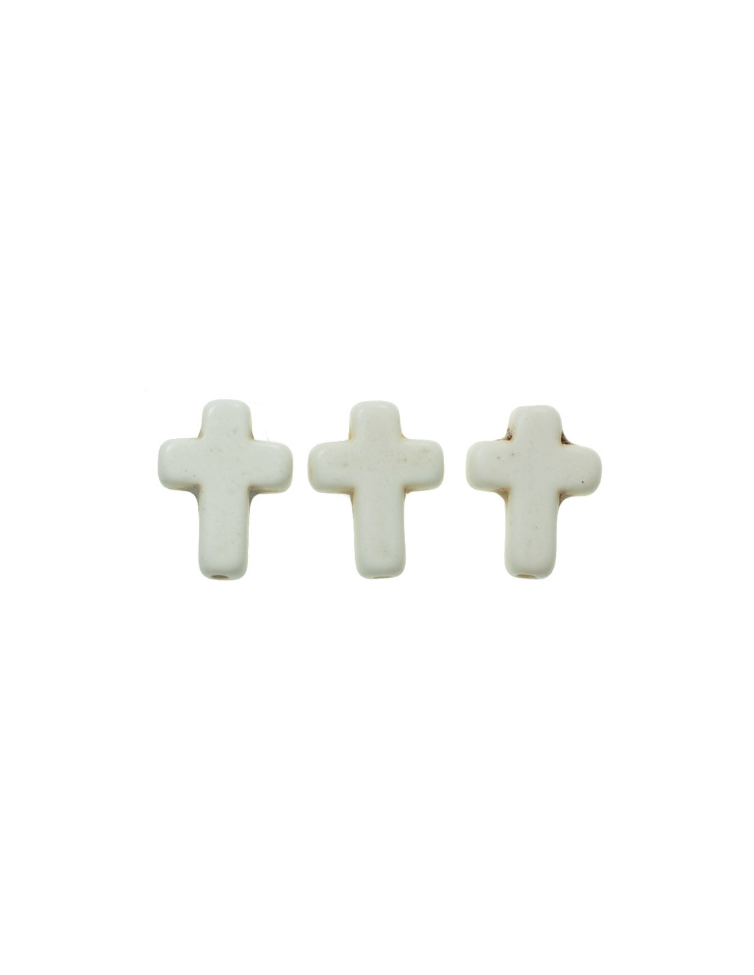 Abalorio cruz de cerámica perforada disponible en color hueso.