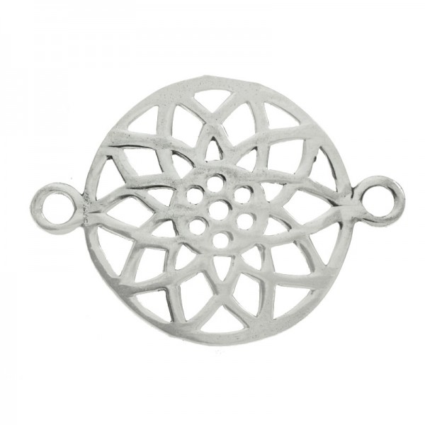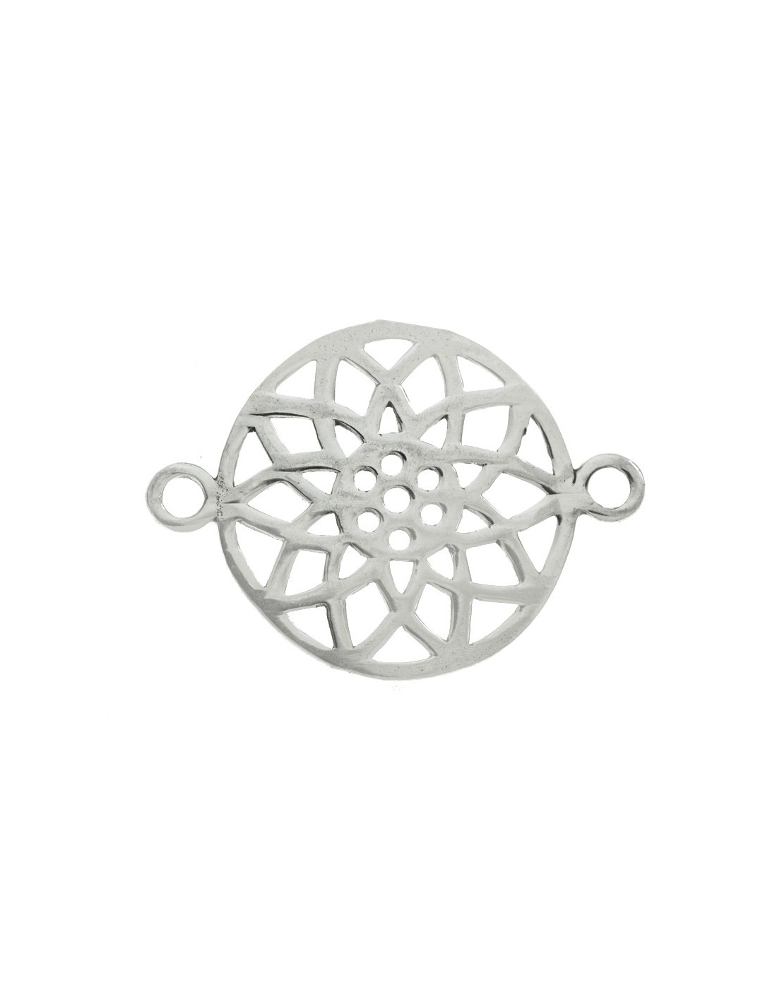 Abalorio entrepieza flor de mandala calado fabricado en Plata de Ley 925.