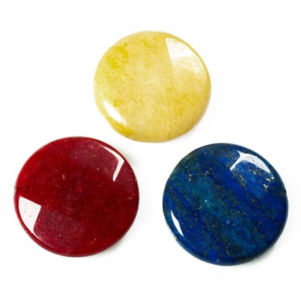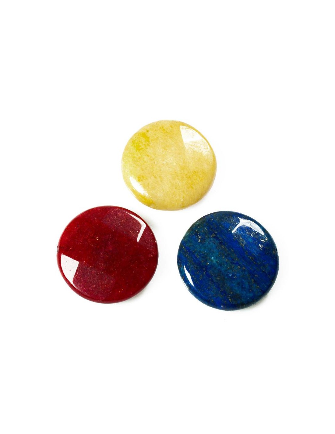 Abalorio redondo piedra facetada con perforación transversal. Disponible en lapislázuli, ágata rubí y ágata citrino.