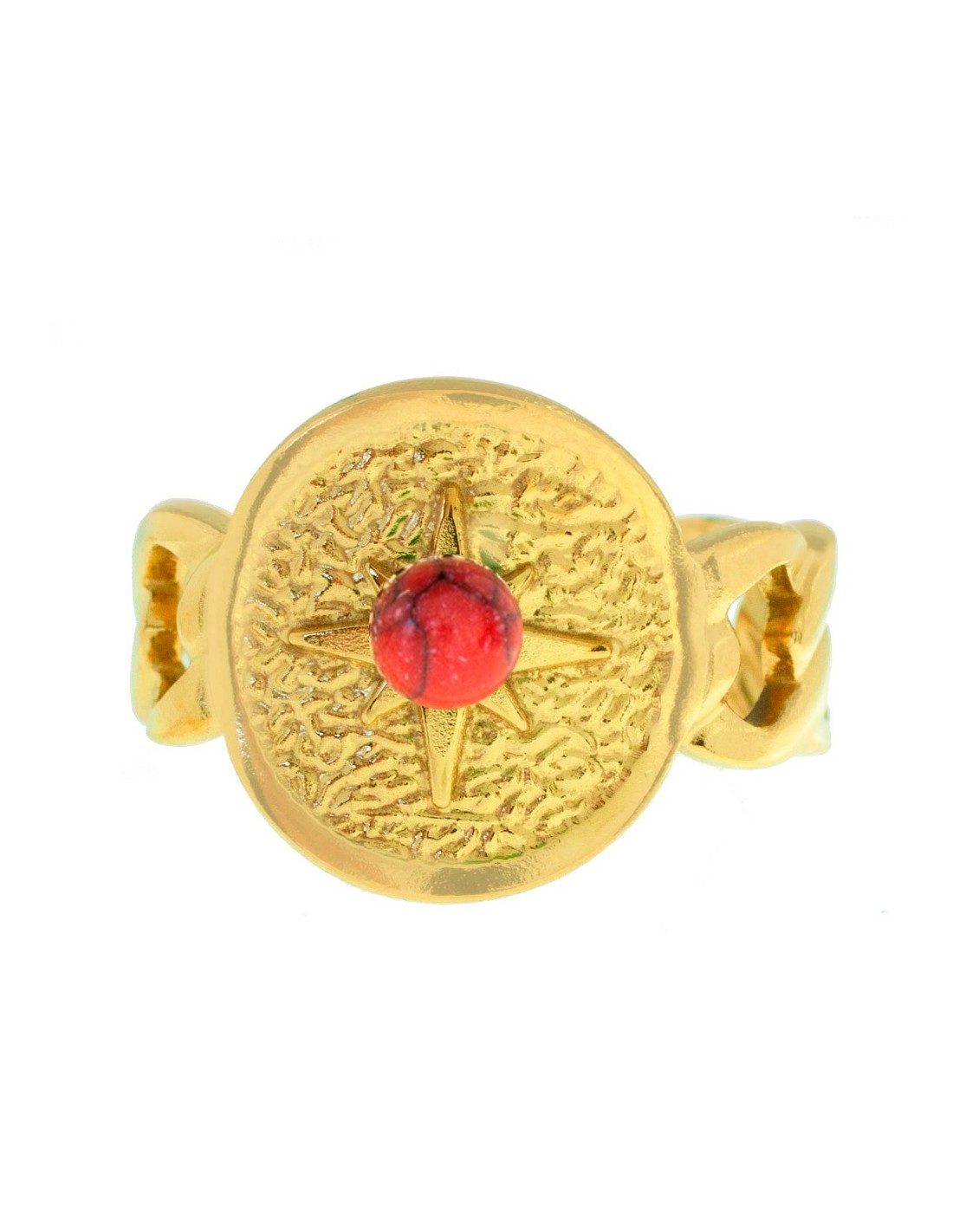 Anillo ajustable cadena con piedra de acero quirúrgico dorado