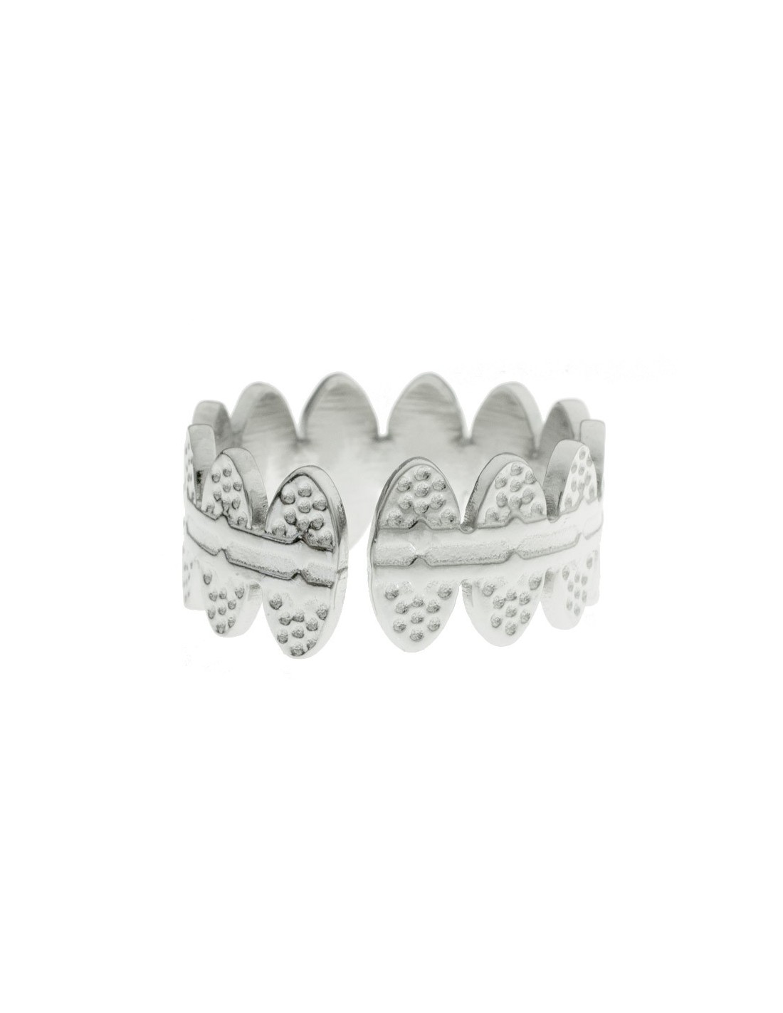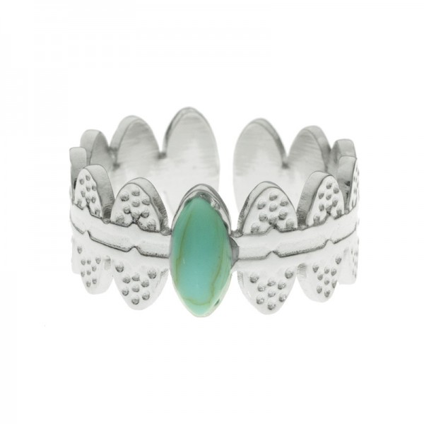 Anillo ajustable martillado óvalos centro turquesa de acero - Karissma