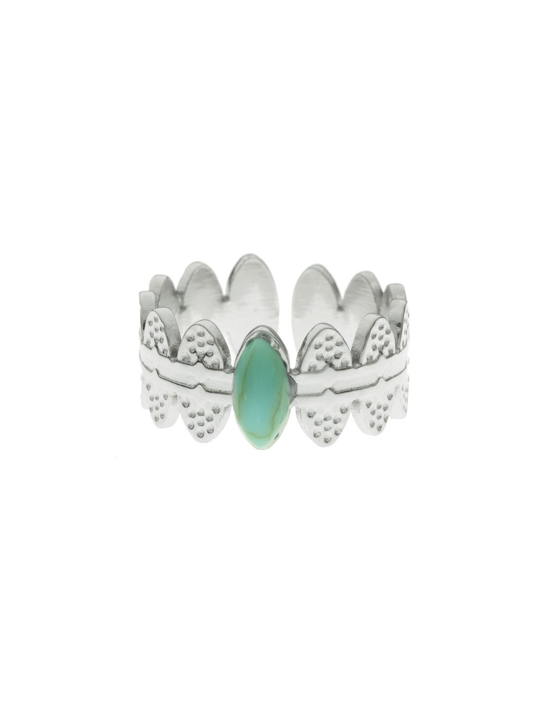 Anillo ajustable martillado óvalos centro turquesa de acero