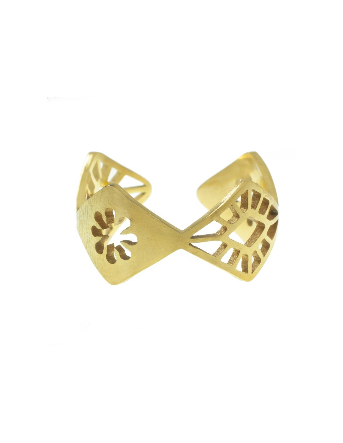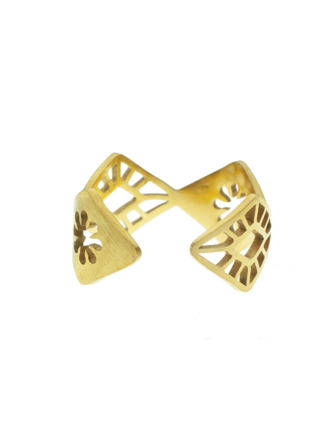 Anillo ajustable rombos calados acero dorado