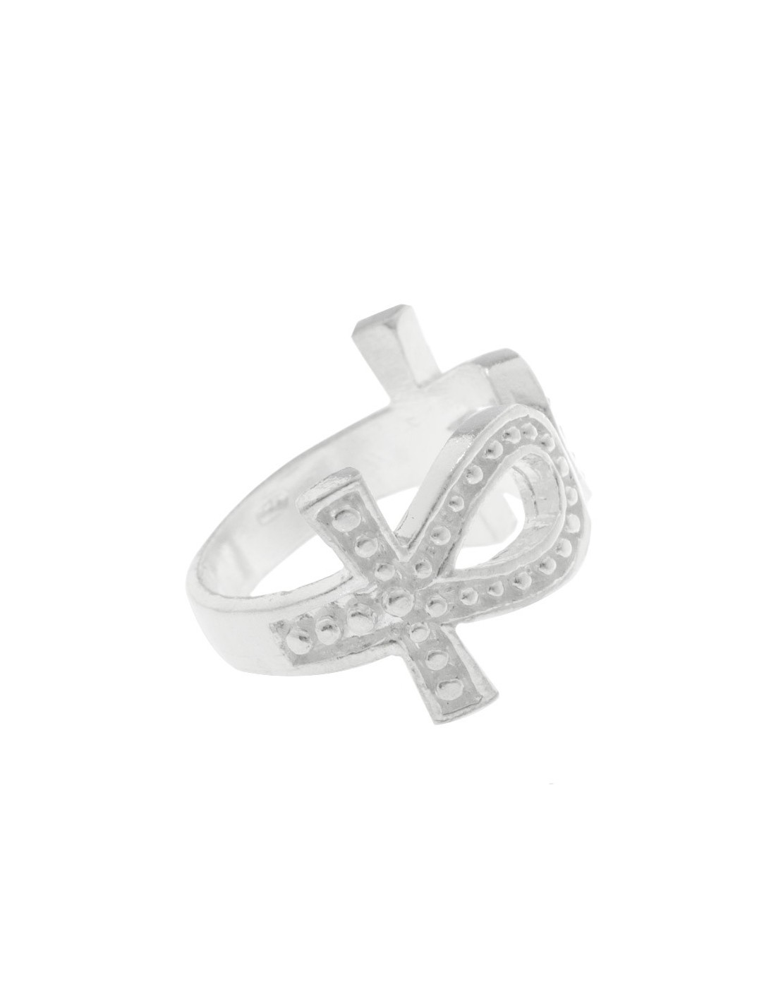 Anillo Plata Cruz de la vida doble en Plata de Ley 925