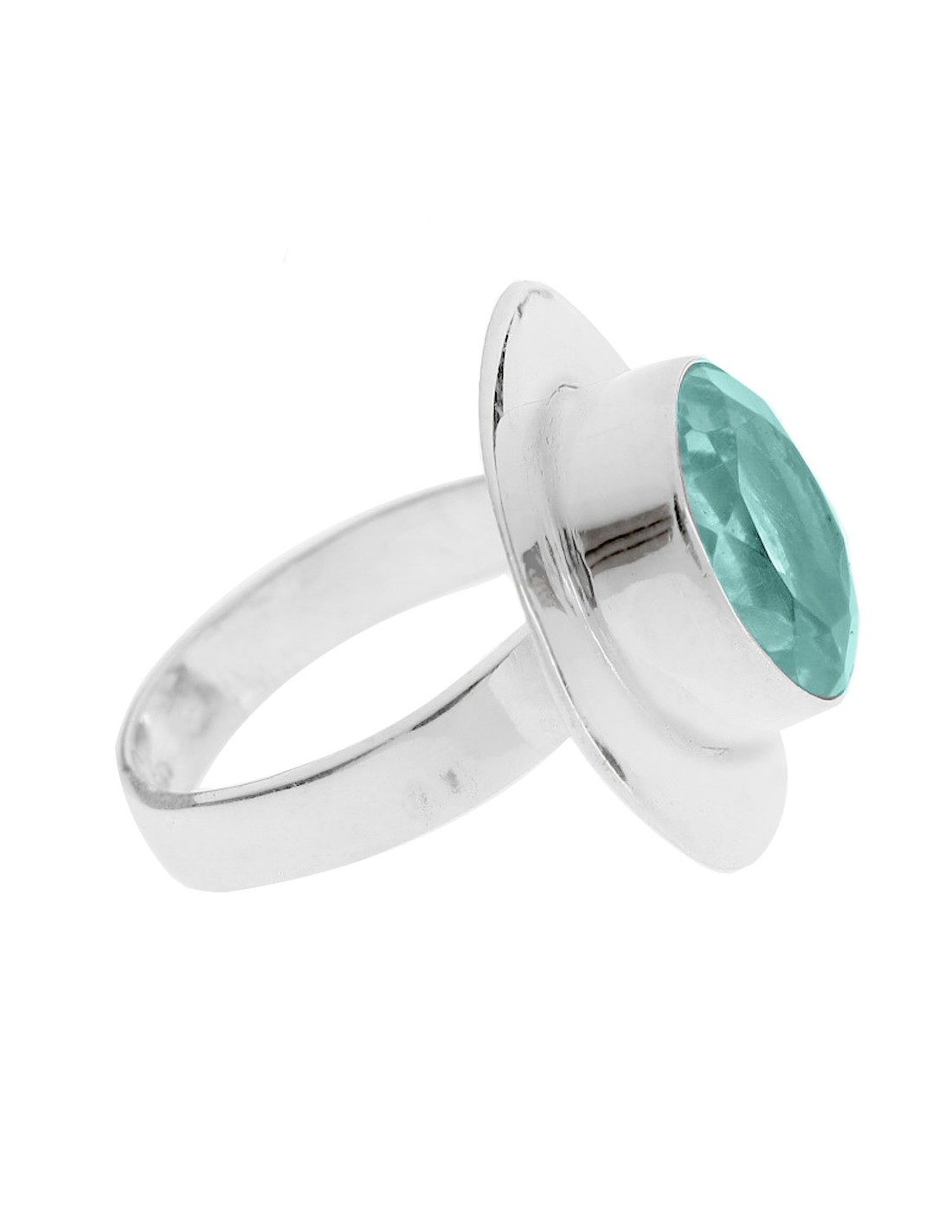 Anillo de aguamarina base plana ancha imponente en Plata de Ley