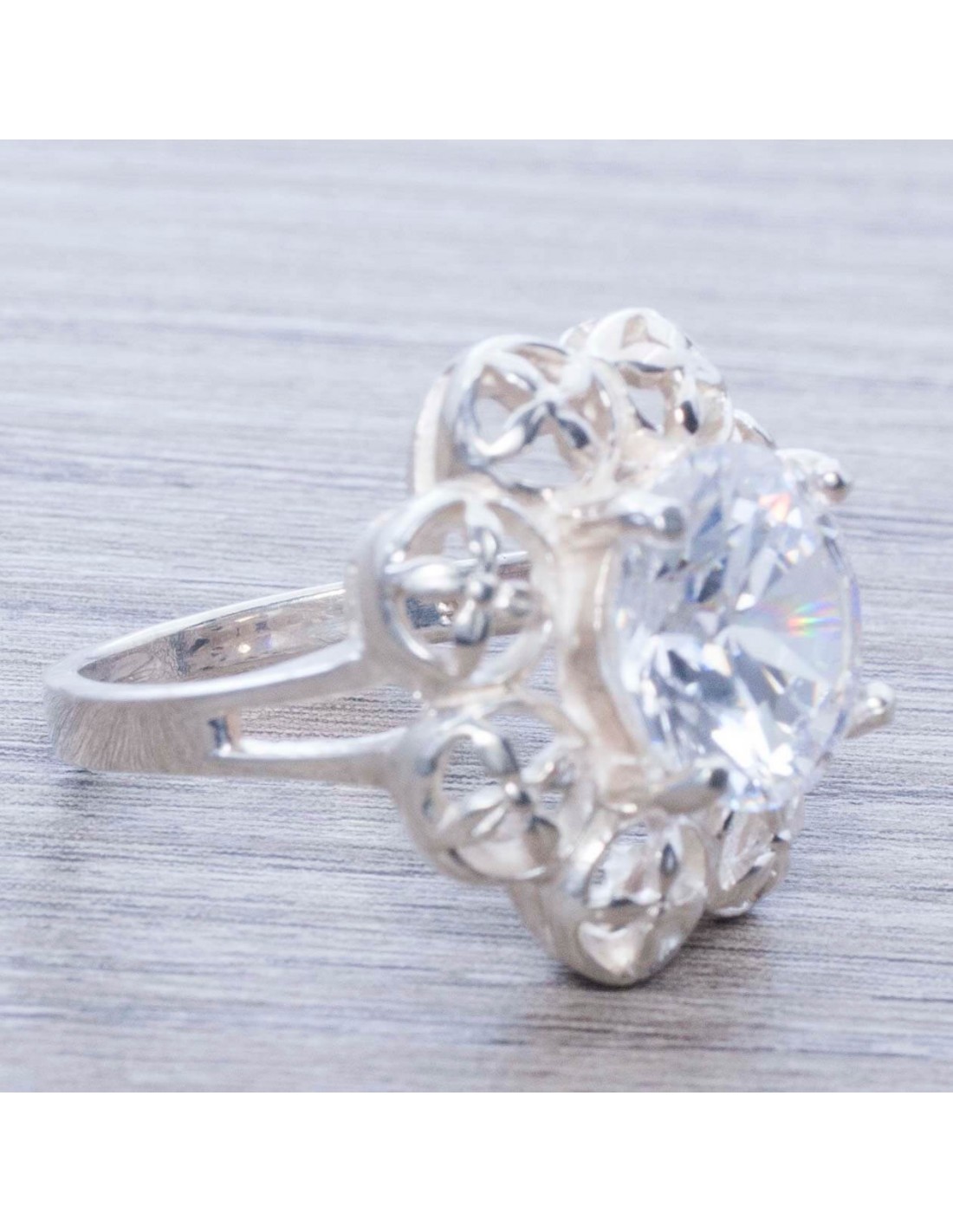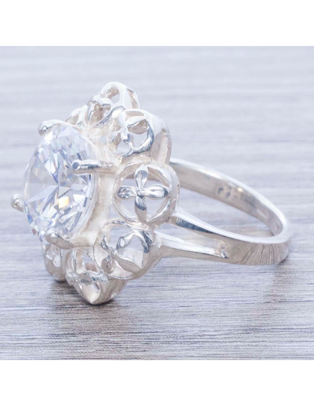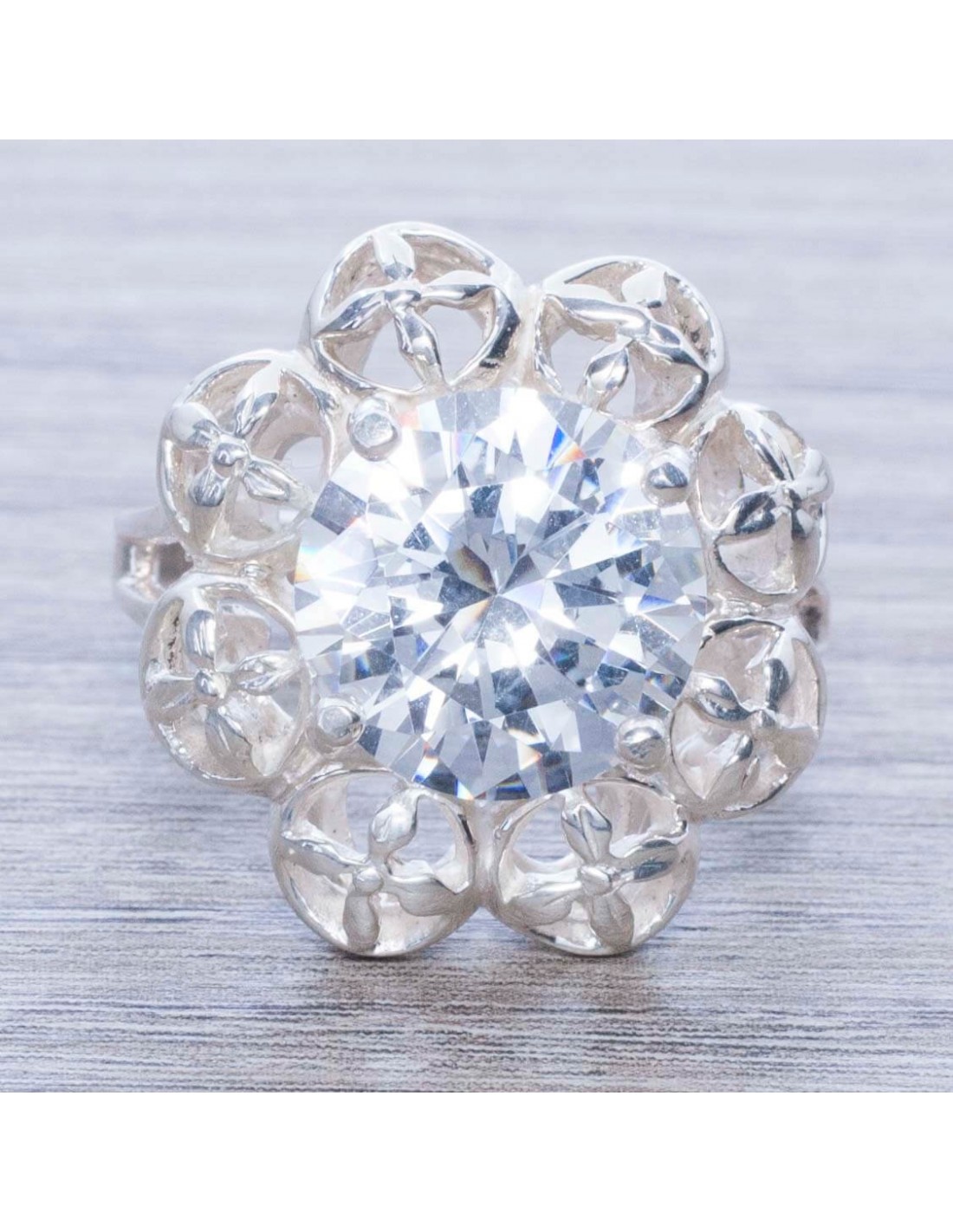Anillo en Plata de Ley 925 con Circonia Flor Calada
