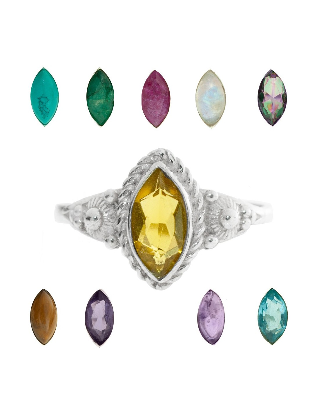 Anillo marquesa piedra natural Plata de Ley