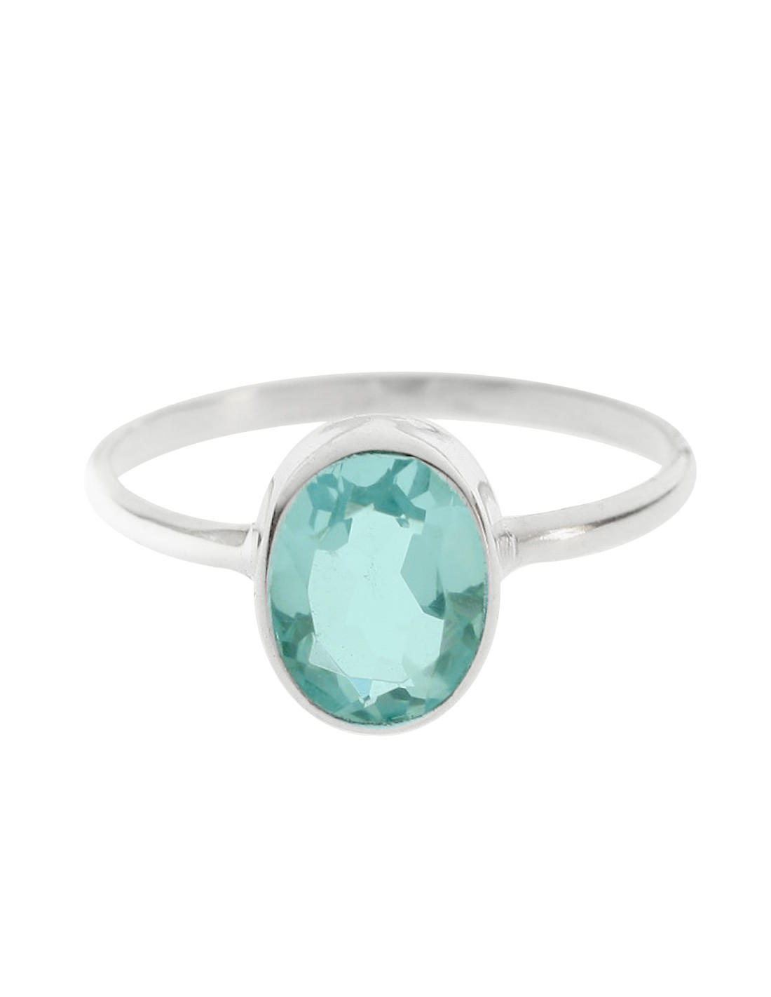 Anillo piedra oval solitario de aguamarina Plata de Ley