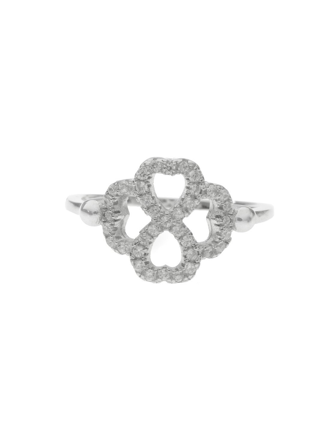 Anillo en Plata de Ley 925 Rod con Circonia Microsetting Trebol Cuatro Hojas