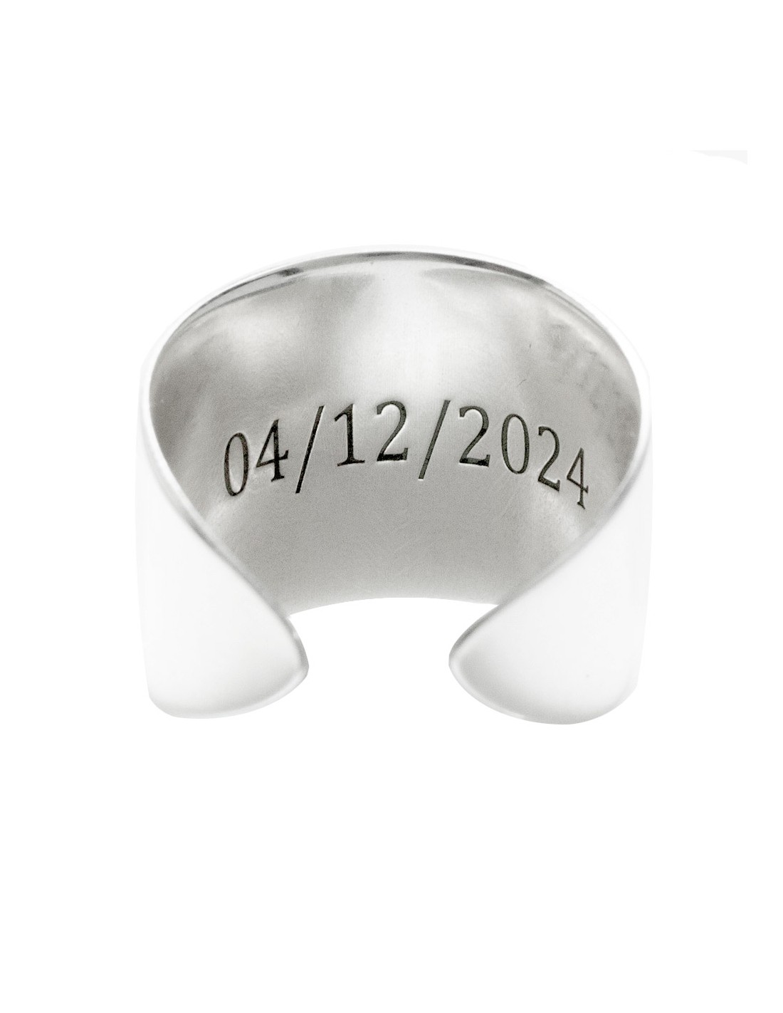 Anillo ajustable XL personalizado "Juego de palabras" con fecha grabada en el interior, fabricado en Plata de 1ª Ley.