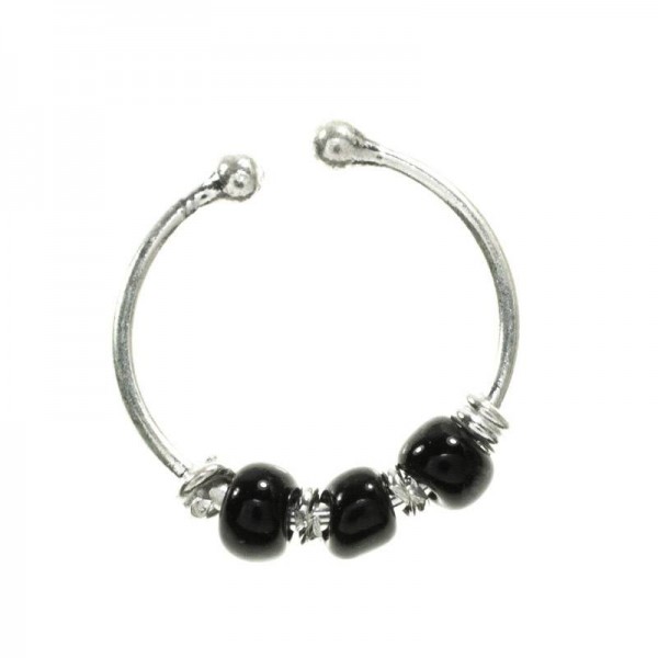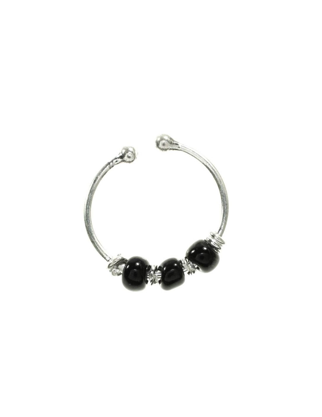 Aro falso sin agujero, con diseño de tres bolas negras, fabricado en Plata de Ley 925
