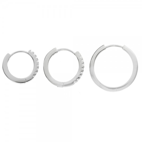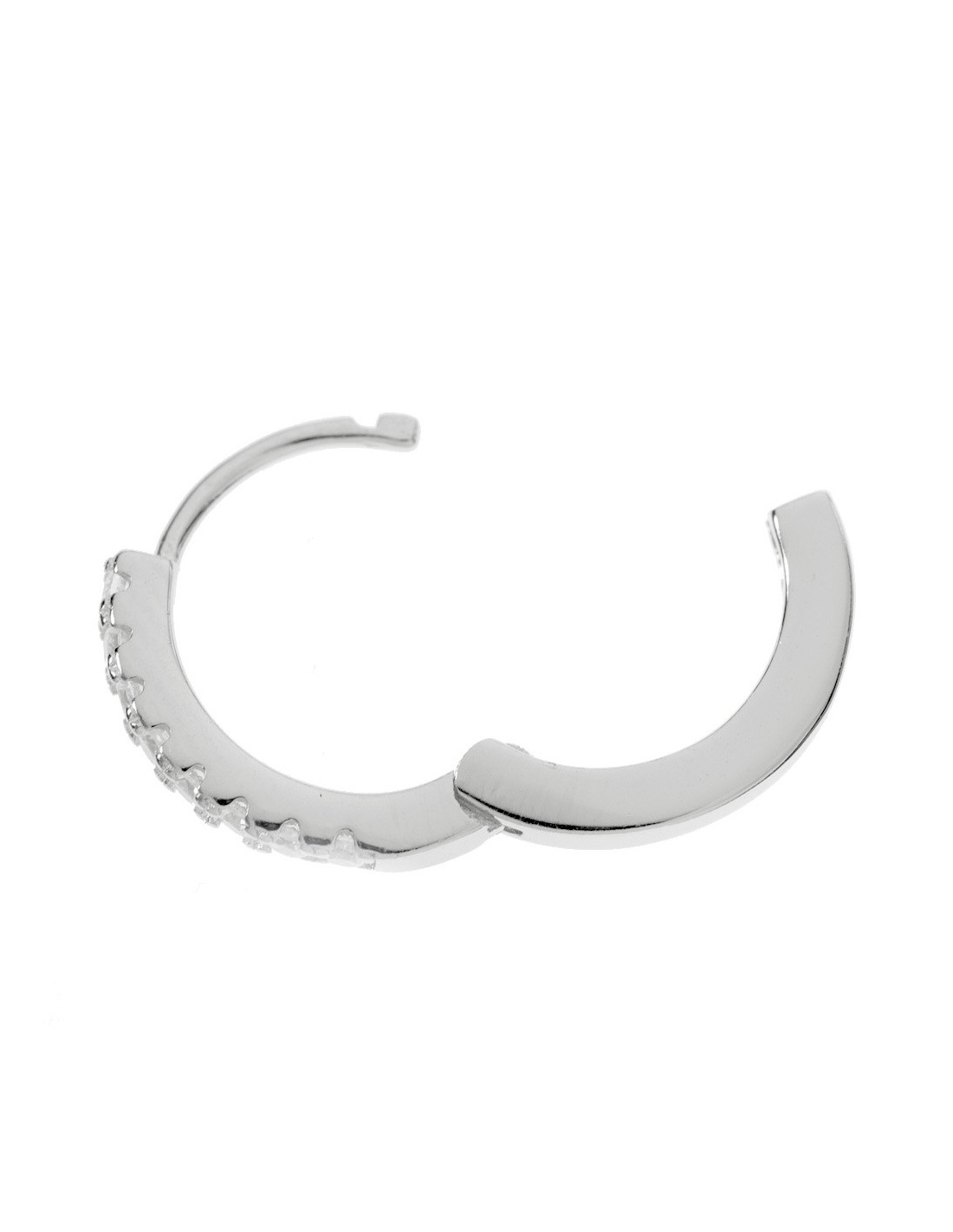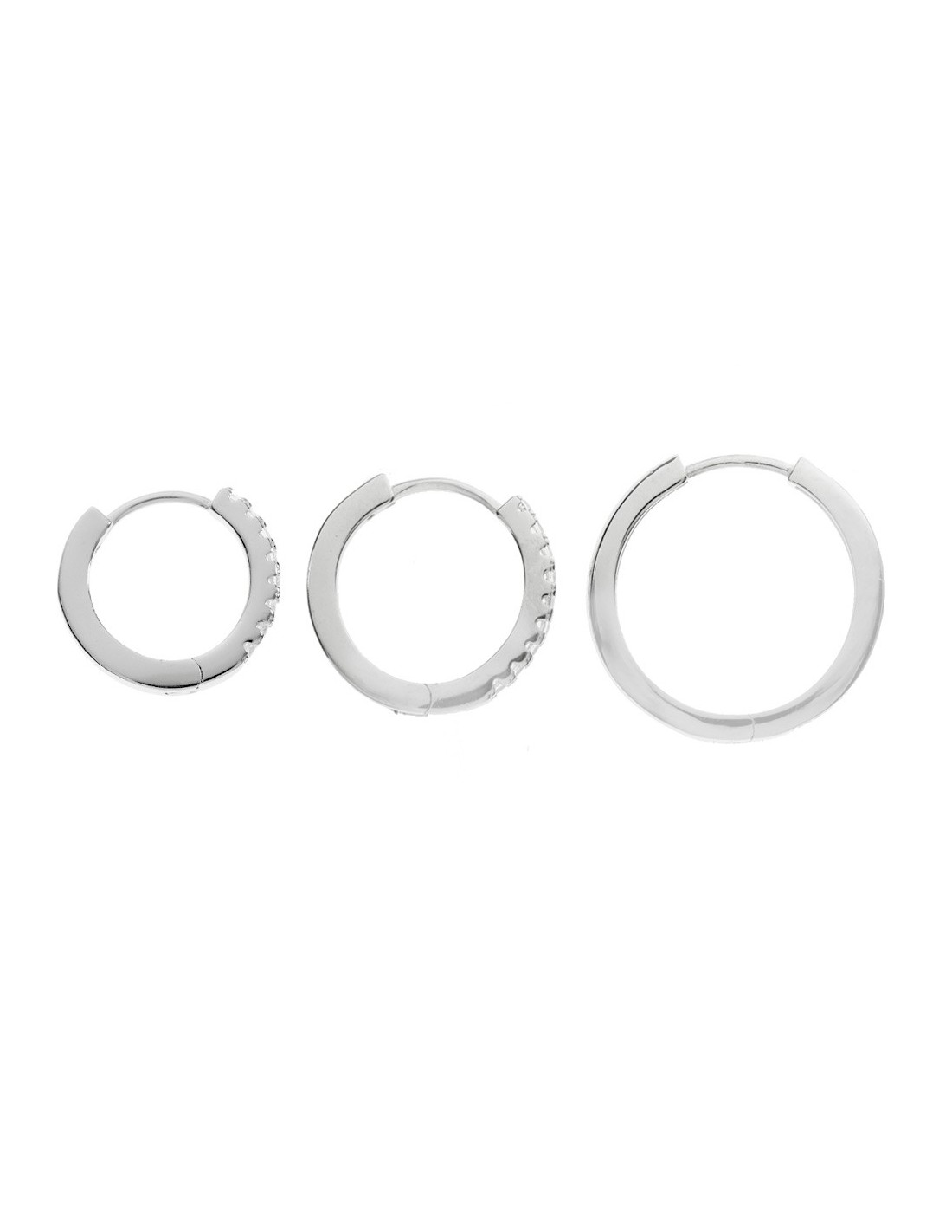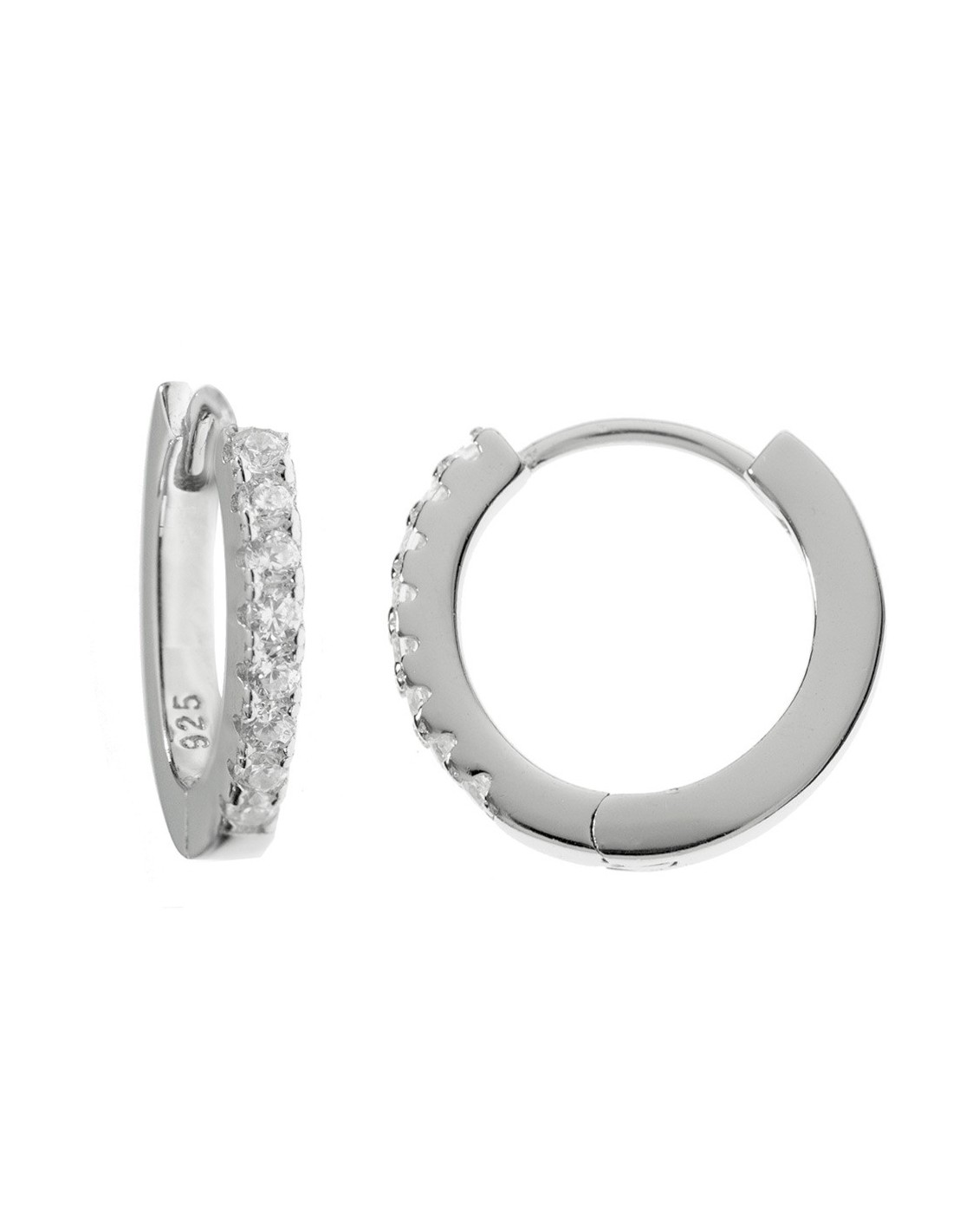 Pendientes aro con circonitas blancas fabricados en Plata de Ley rodiada. Varios tamaños.