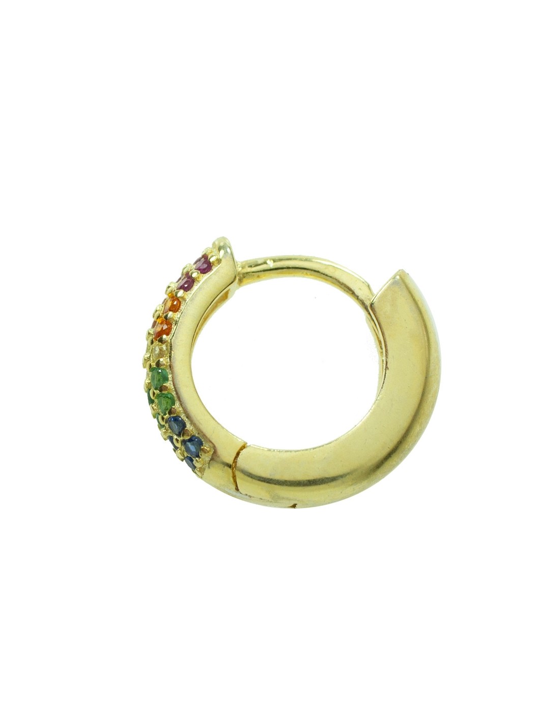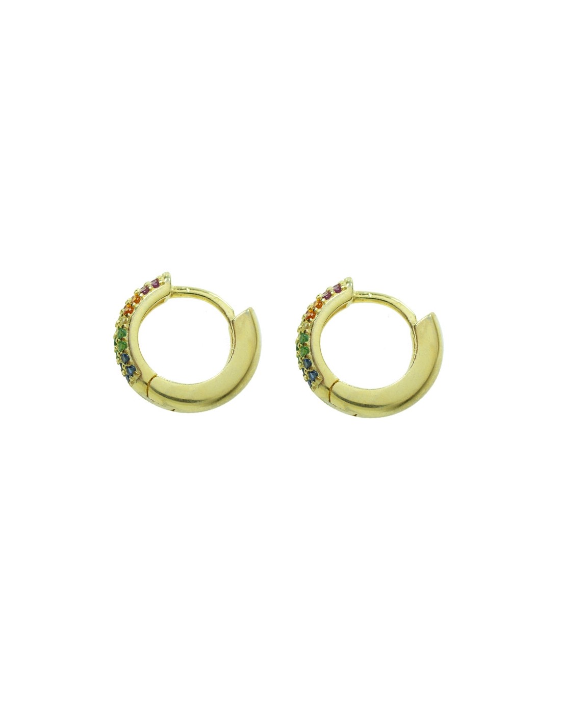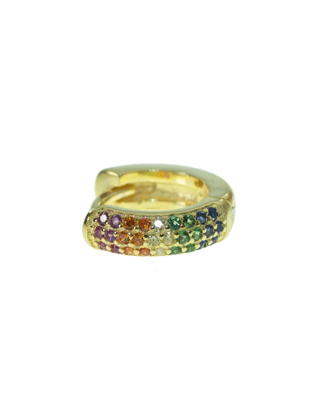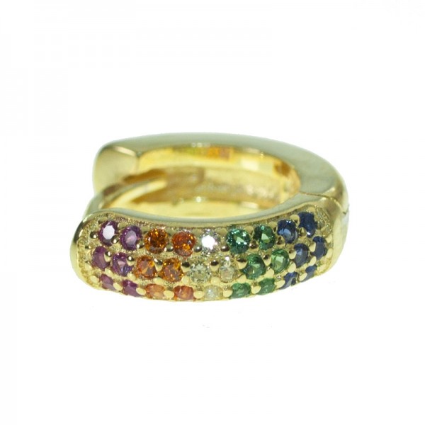 Pendientes aro dorado con tres líneas de circonitas de colores fabricados en Plata de Ley 925 bañada en Oro