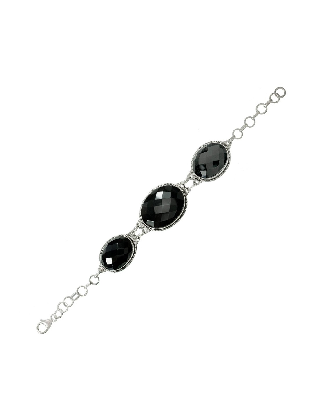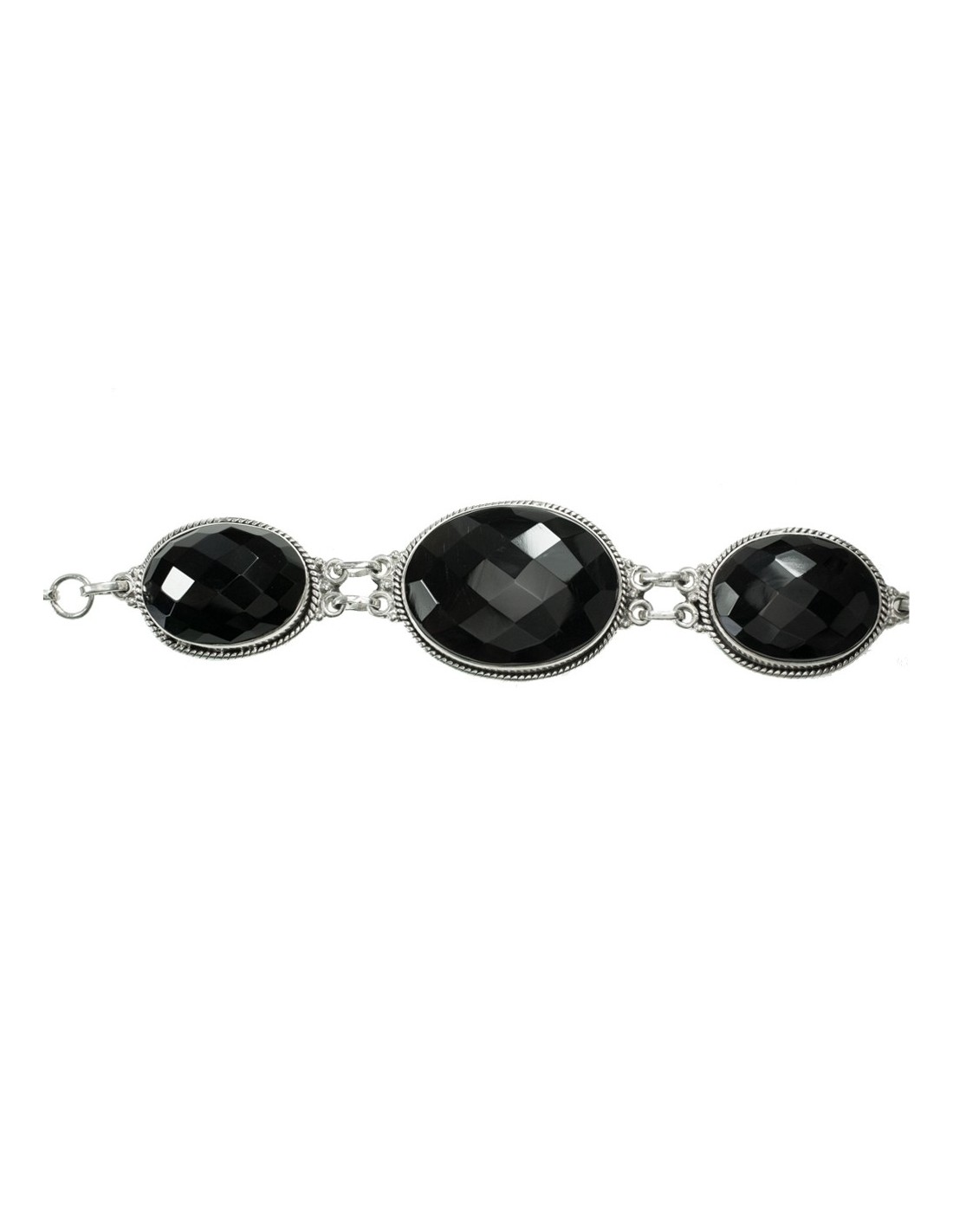 Brazalete triple ónix facetado Plata de Ley - Karissma