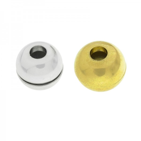 Cierre de bisutería bola con imán disponible en plateado y dorado.