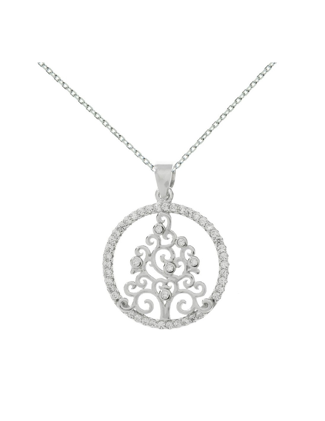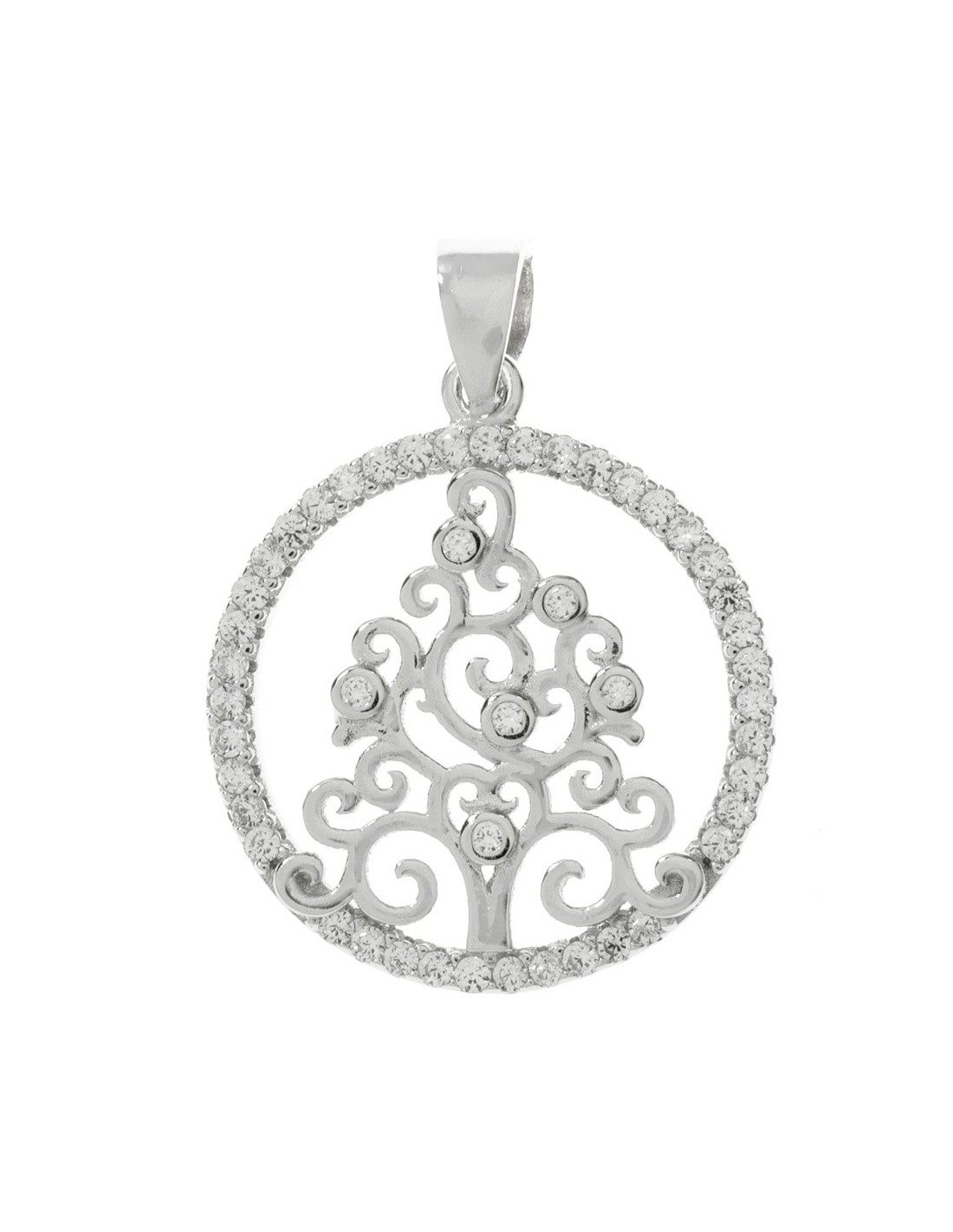 Colgante redondo con abeto con circonitas blancas fabricada en Plata de Ley 925 rodiada