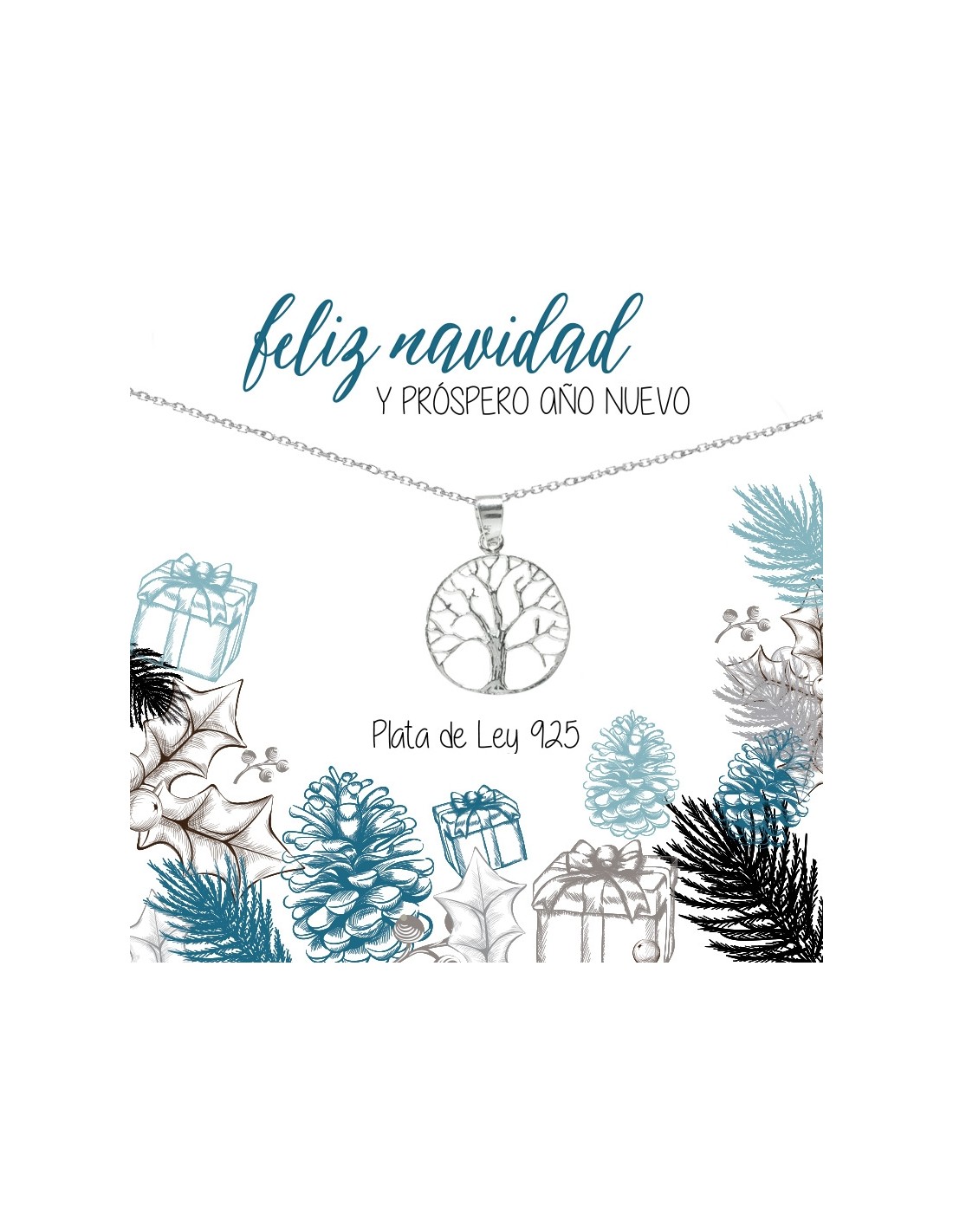Colgante árbol de la viada con adena incluida, fabricado en Plata de Ley 925, perfecto para regalar en Navidad, Papá Noel o amigo invisible.