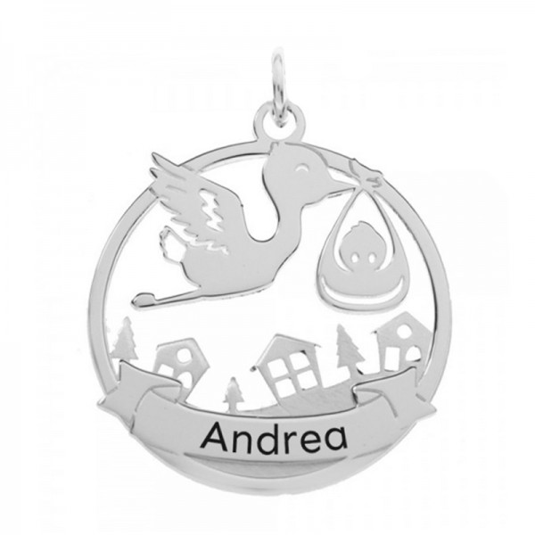 Colgante cigüeña nacimiento Plata de Ley personalizable