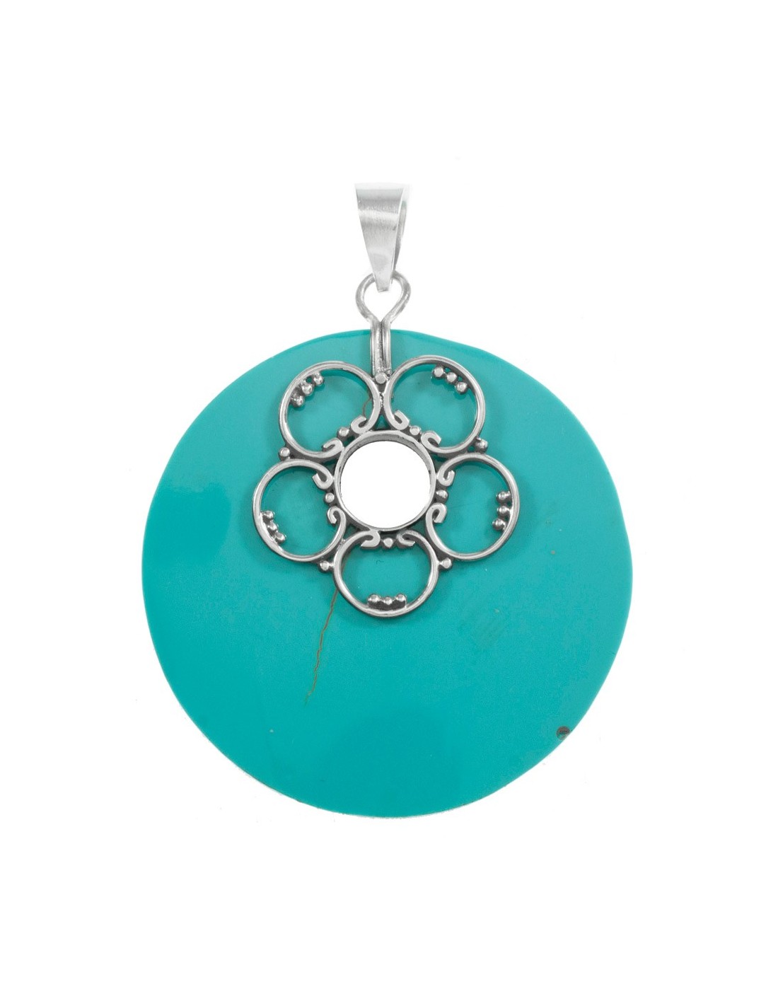 Colgante de turquesa reconstituida flor Plata de Ley 925.