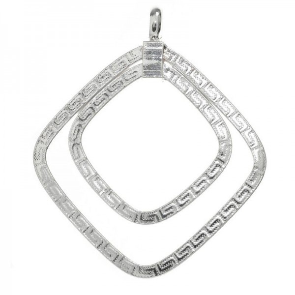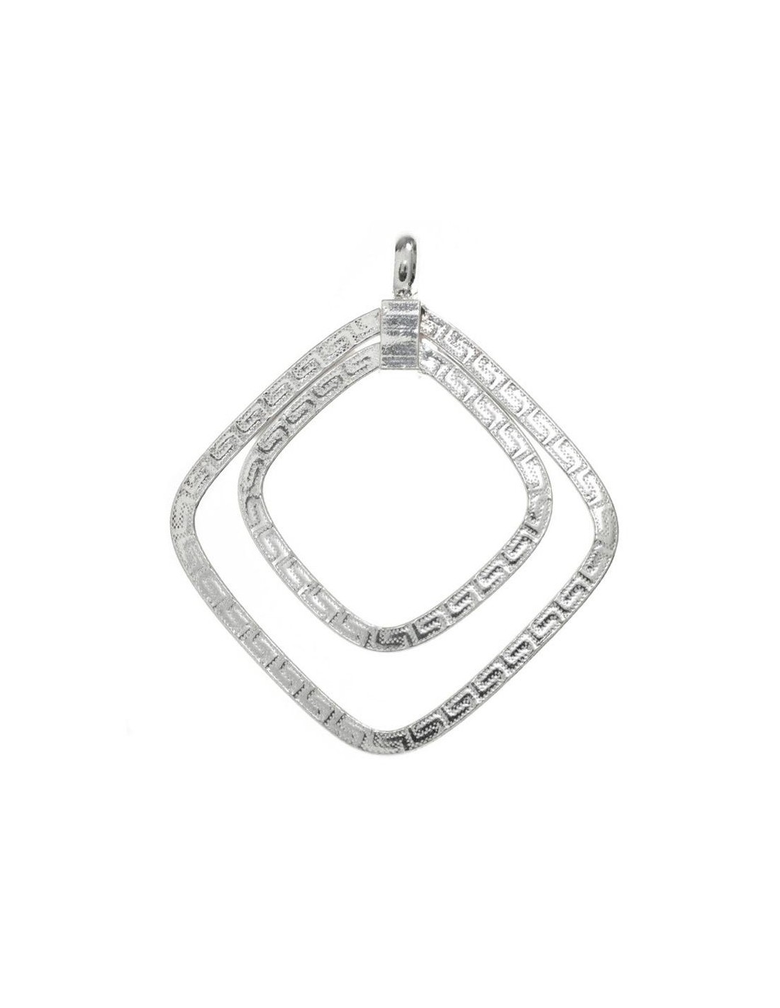 Elegante colgante doble cuadrado con textura greca, fabricado en Plata de Ley 925 con acabado liso.