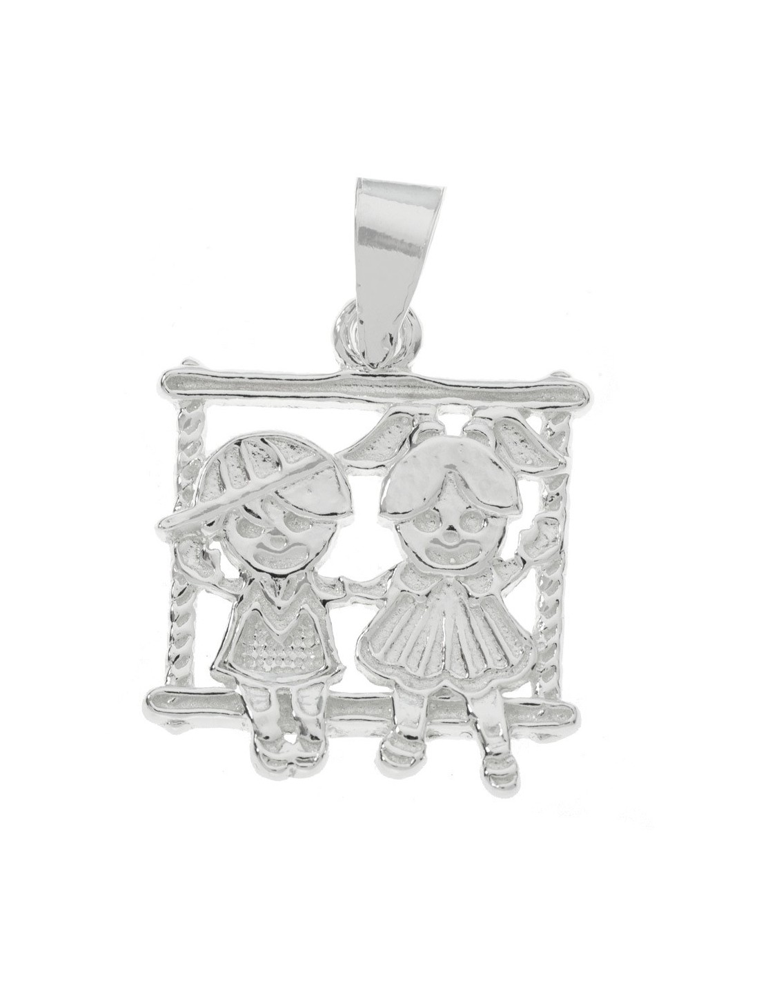 Colgante con diseño de niños sentados sobre un columpio, acabado oxidado y fabricado en Plata de Ley 925.