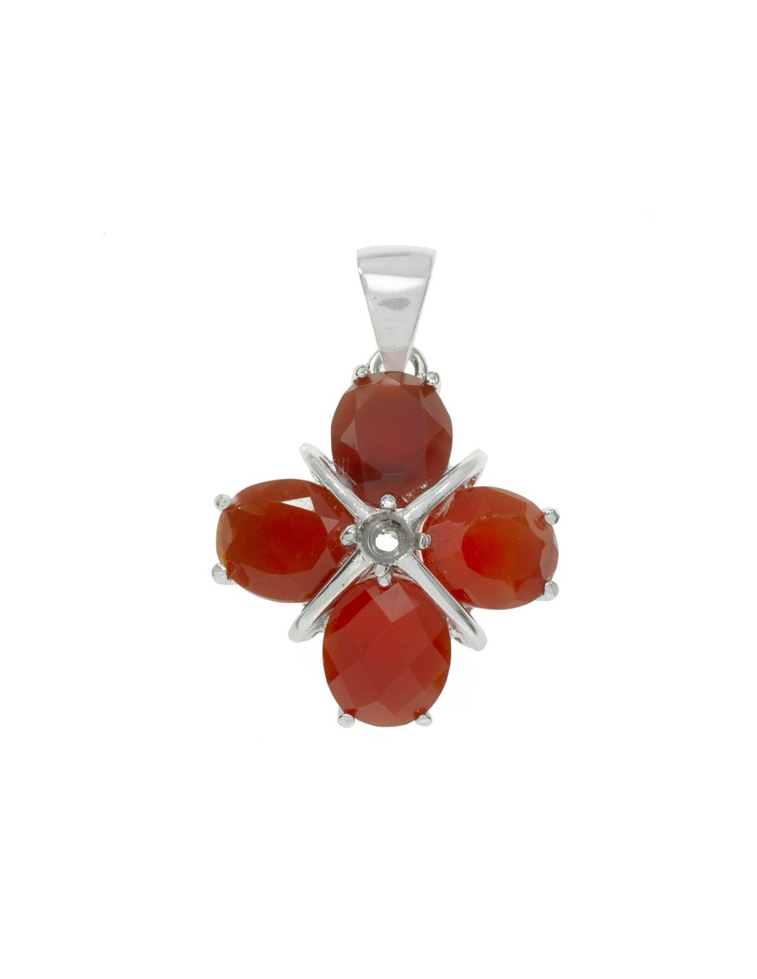 Precioso colgante de estilo retro con diseño flor con piedra natural coralina facetada, fabricado en Plata de Ley 925 con acabado rodiado.