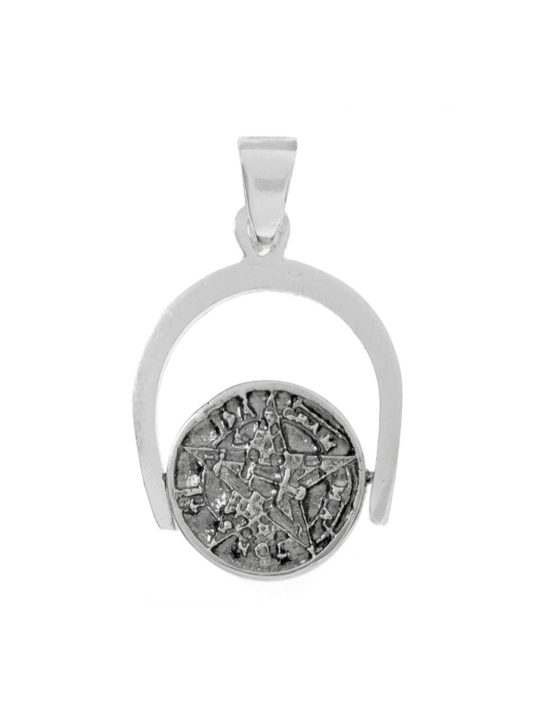 Colgante amuleto giratorio Nudo de Bruja & Tetragrámaton de Plata de Ley