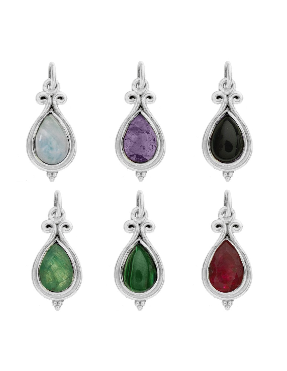 Colgante étnico diseño gota de piedra natural fabricado en Plata de Ley
