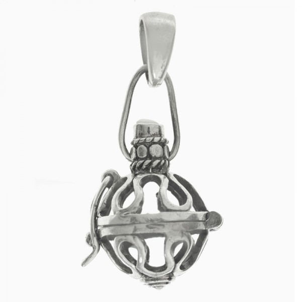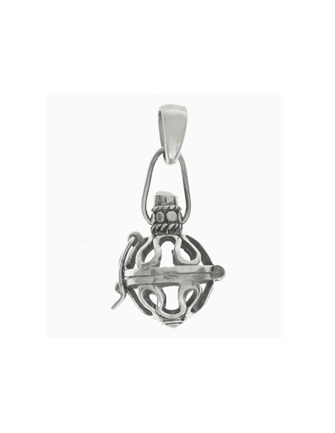 Original colgante guarda deseos oxidado en bola calada, fabricado en Plata de Ley 925 con acabado liso.