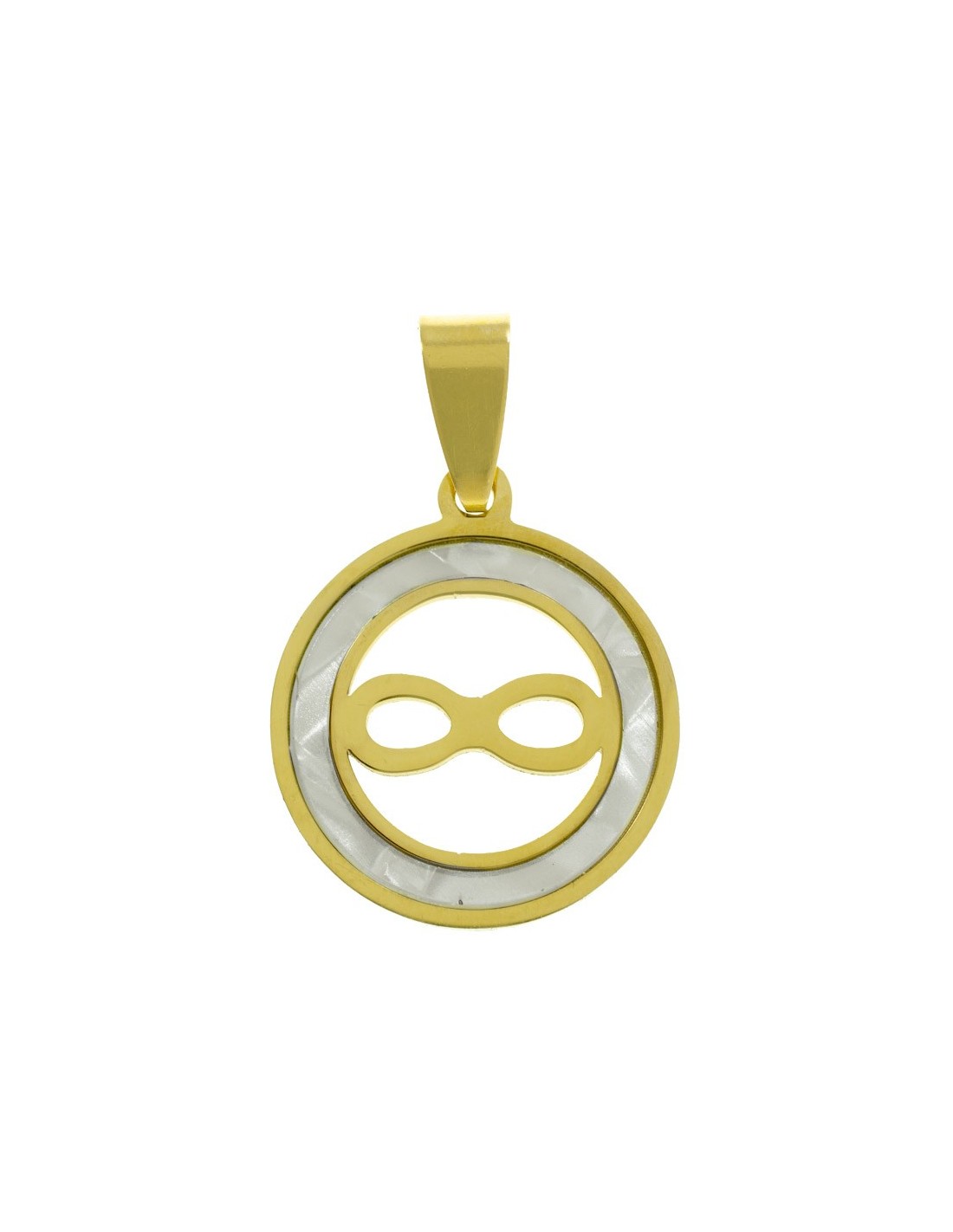 Colgante infinito dorado con nácar fabricado en acero inoxidable