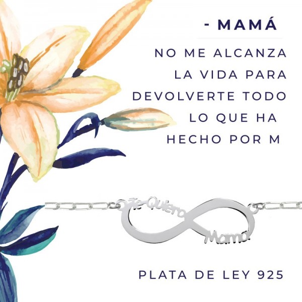Collar infinito Te quiero mamá Plata de Ley 925