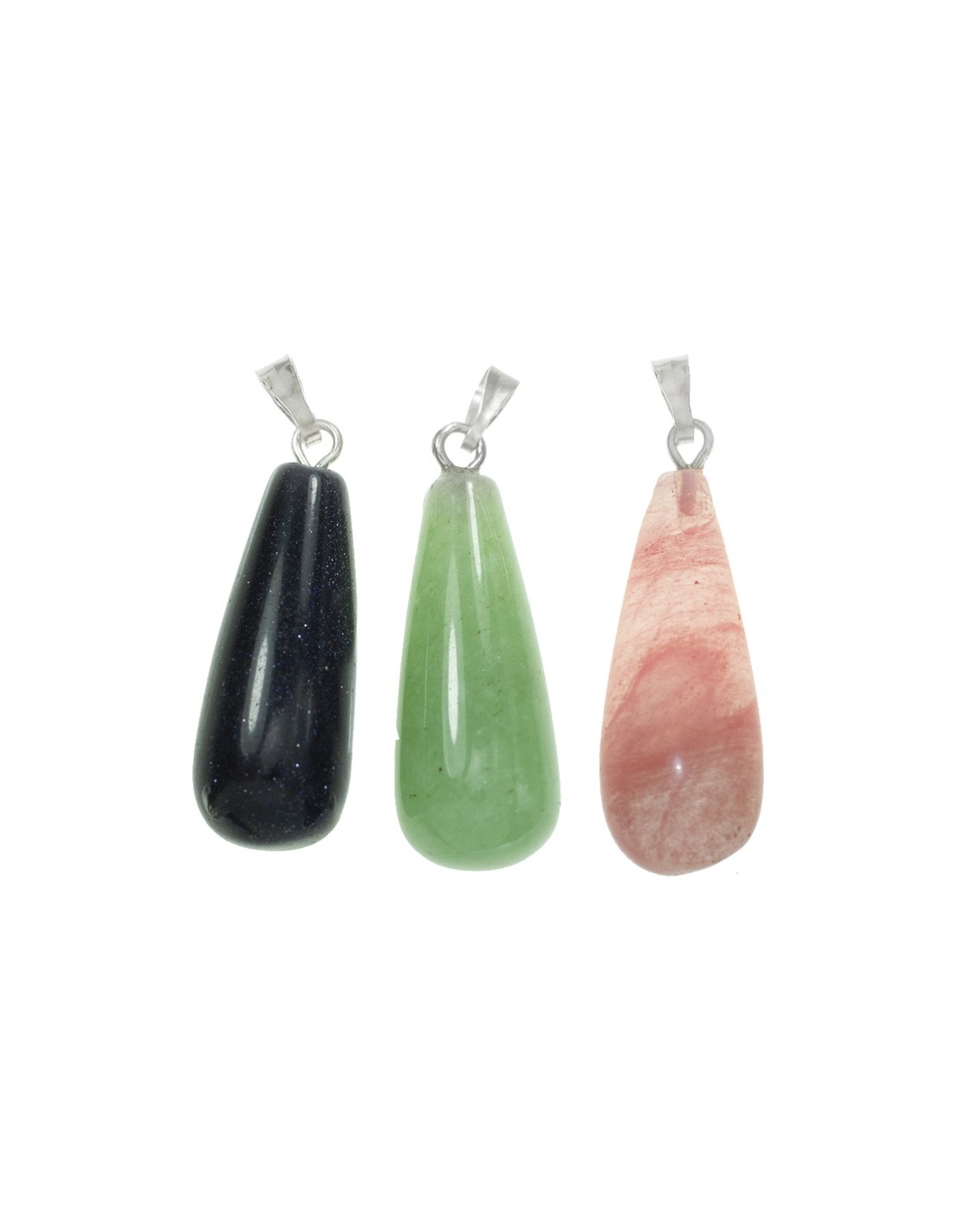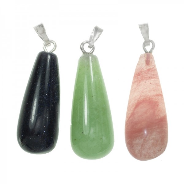 Colgante con diseño de lágrima con drop de bisutería. Disponinble en Aventurina y Opalina.
