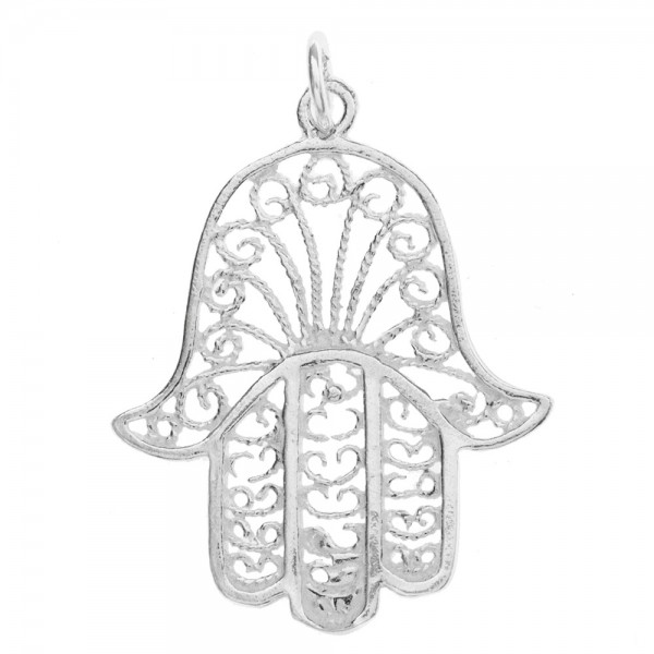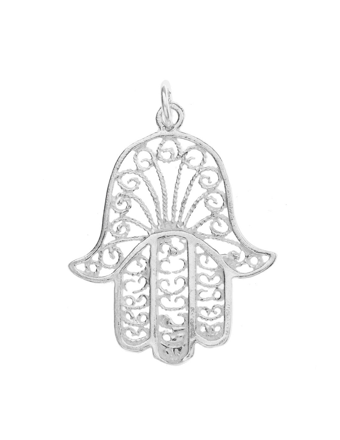 Colgante mano de Fátima calada con espirales de Plata de Ley