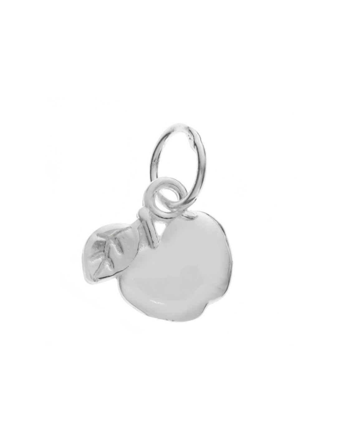 Colgante con diseño de manzana con hoja y arandela, fabricado en Plata de Ley 925 con acabado liso.