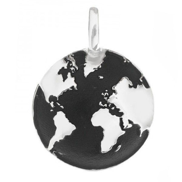 Colgante mundo esmaltado fabricado en Plata de Ley 925.