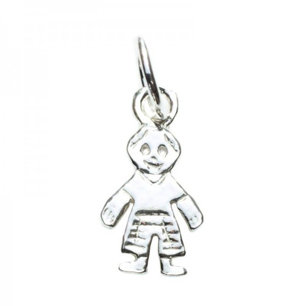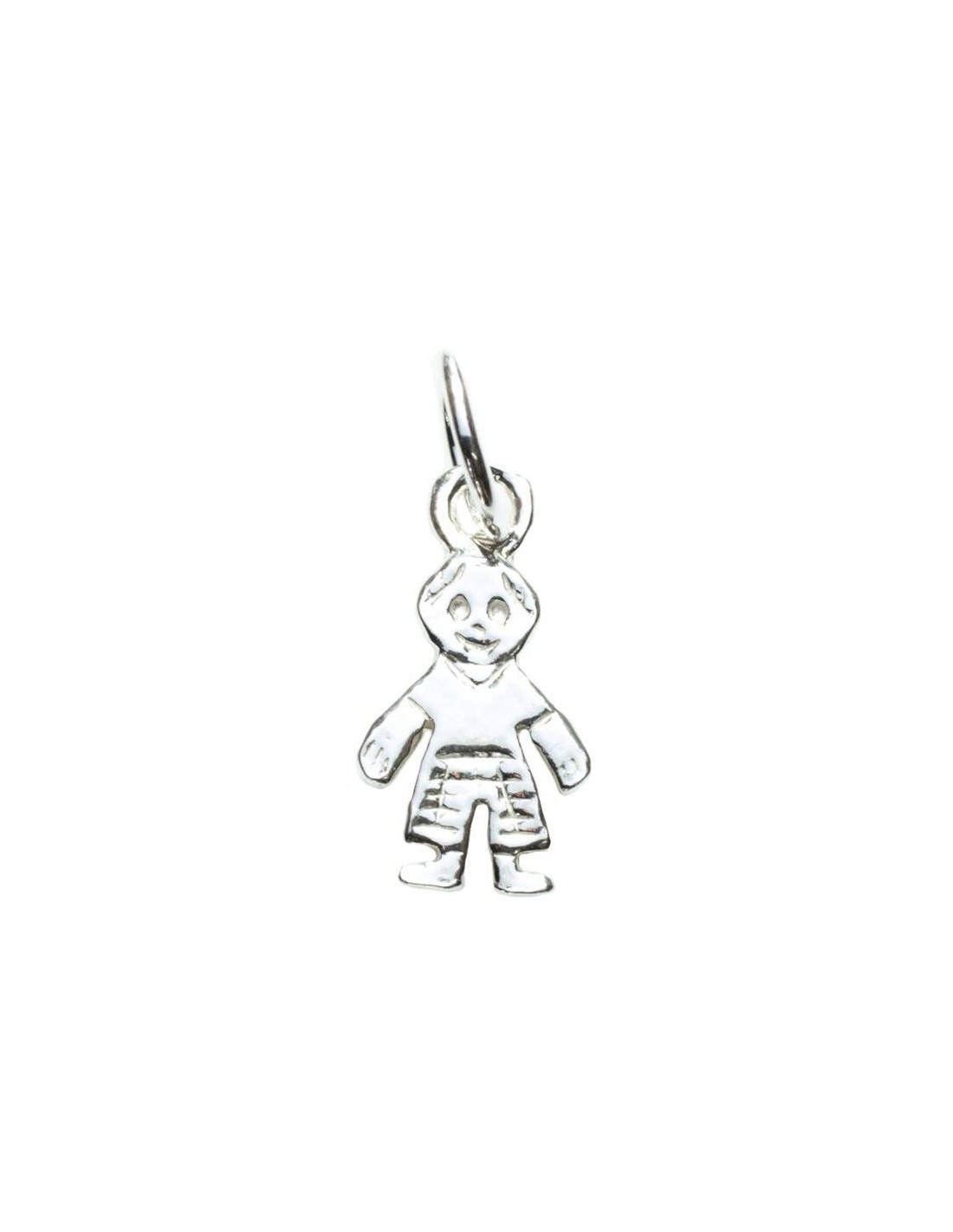 Colgante para fornituras con diseño de niño con arandela para colgar, fabricada en Plata de Ley 925 con acabado liso.