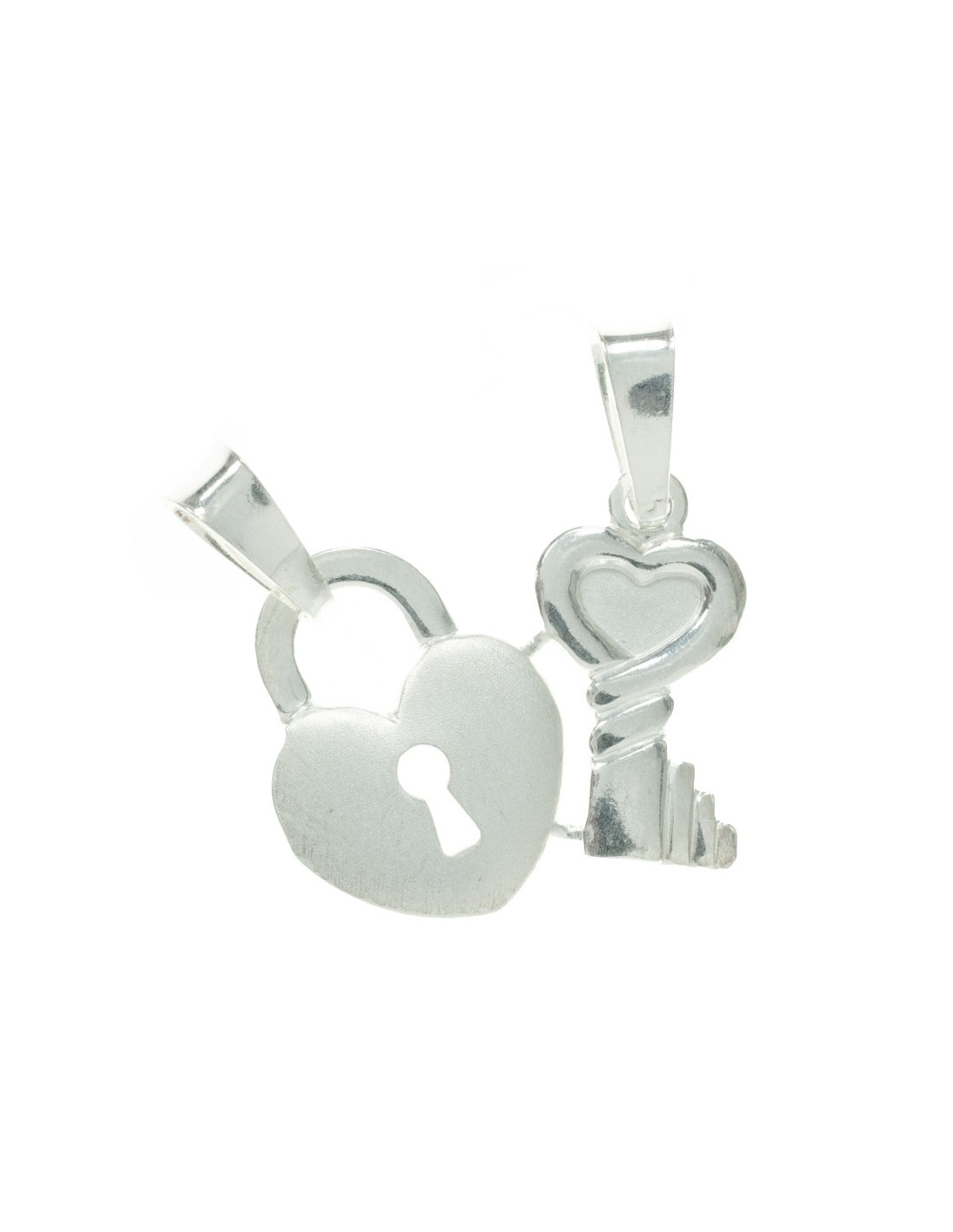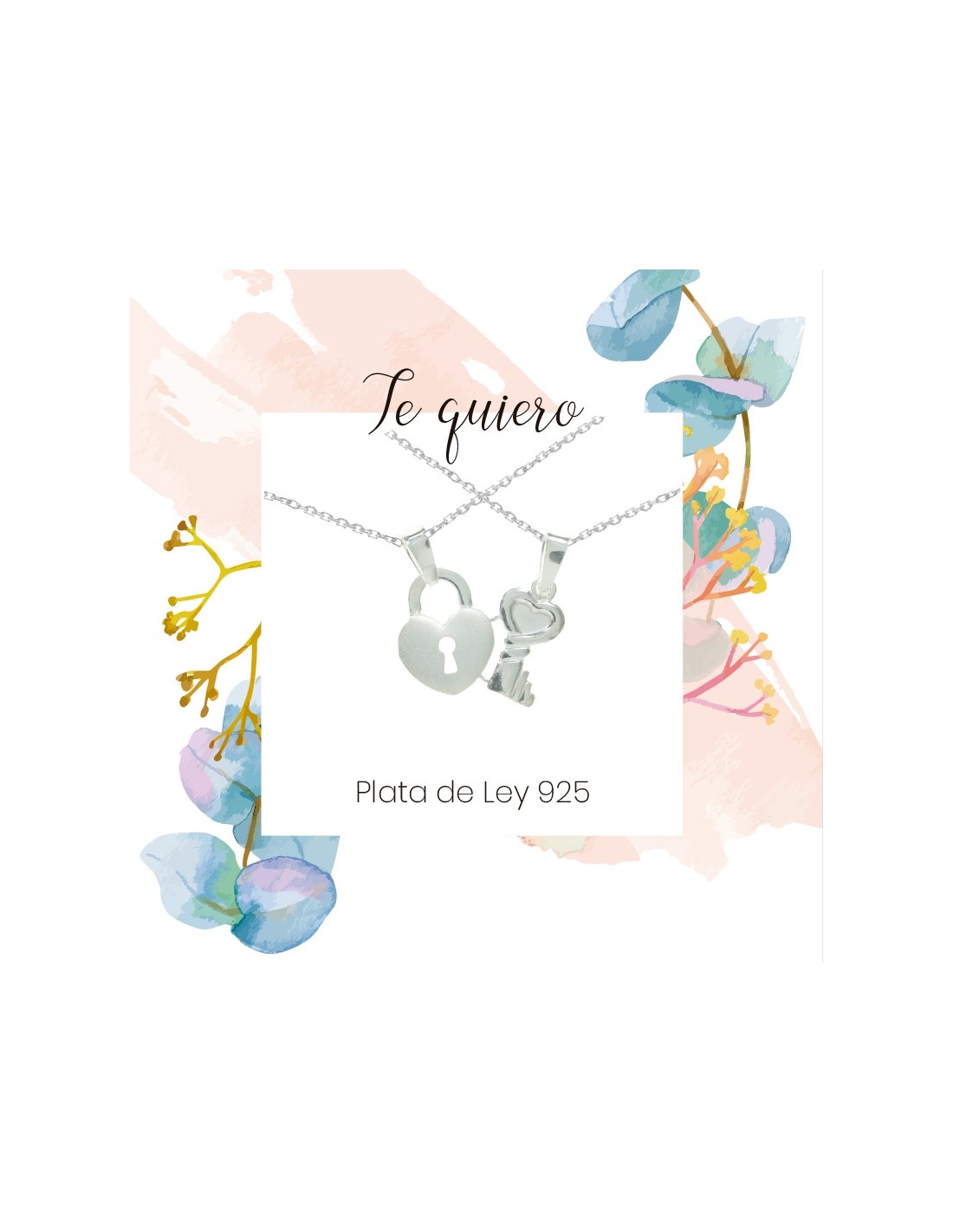 Colgante para dos candado y llave Plata de Ley. Incluye doble cadena.