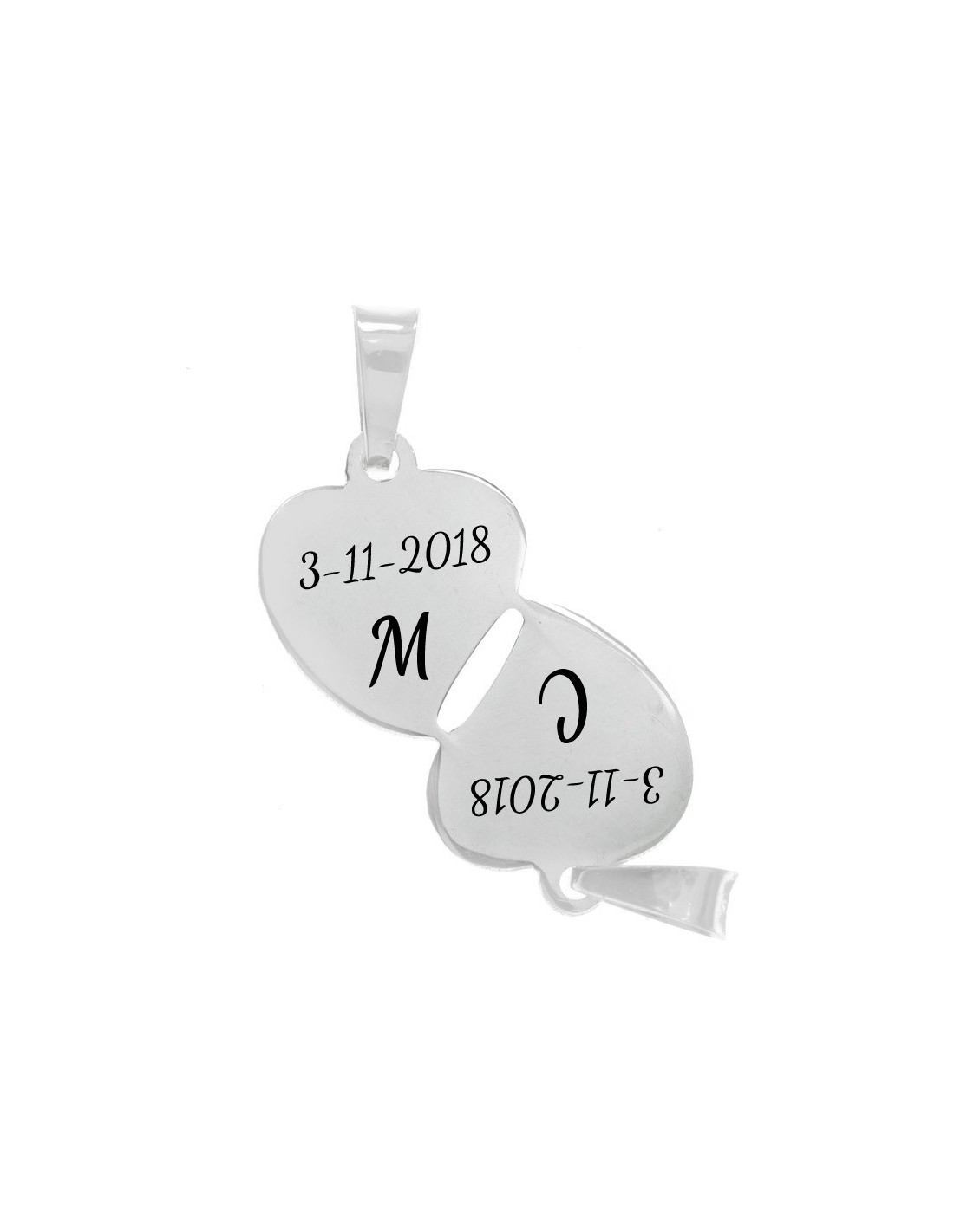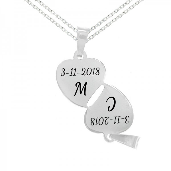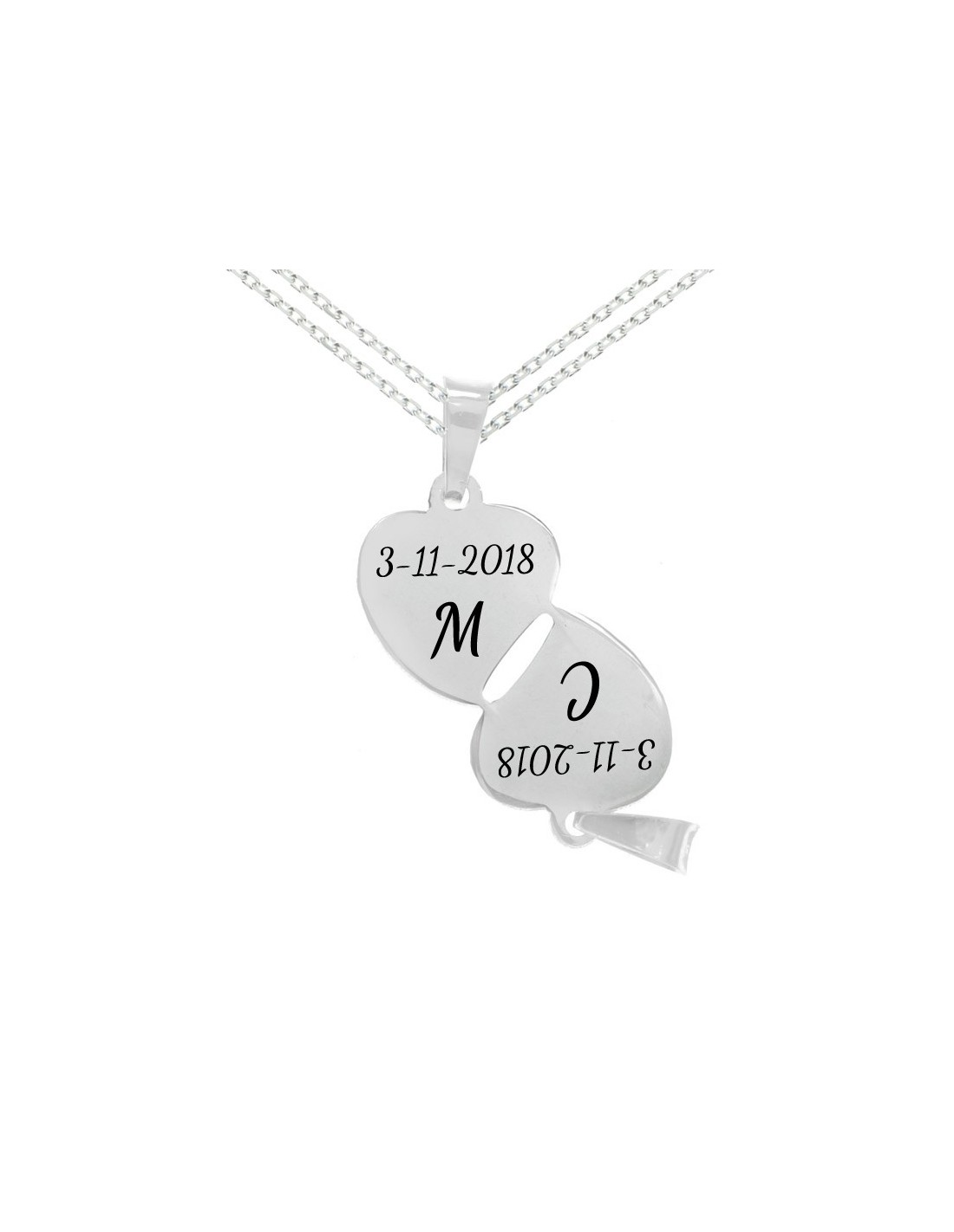 Colgante para dos doble corazón Plata de Ley. Incluye dos cadenas.