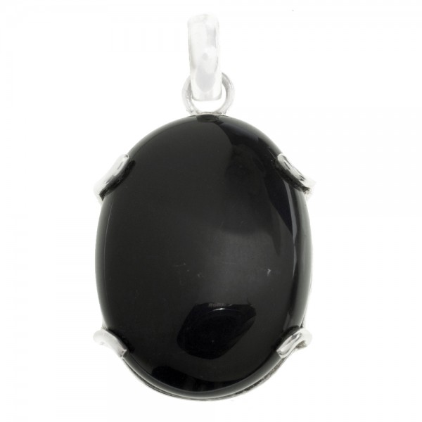 Colgante piedra oval de ónix XL con base de cuatro garras de Plata de Ley 925