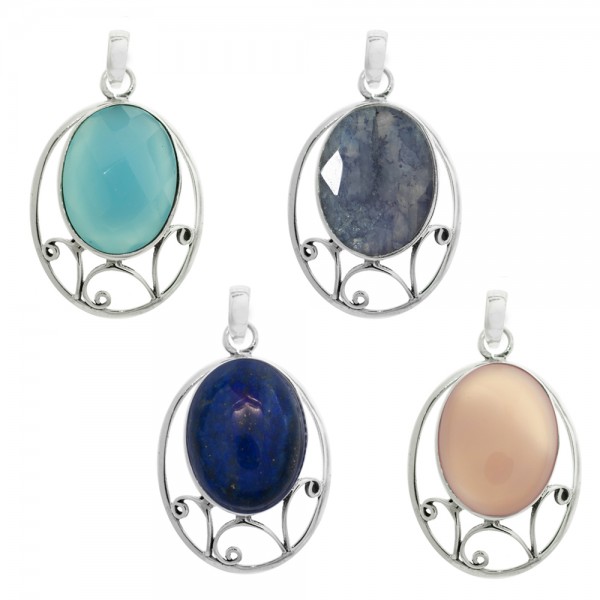 Colgante piedra oval Plata de Ley