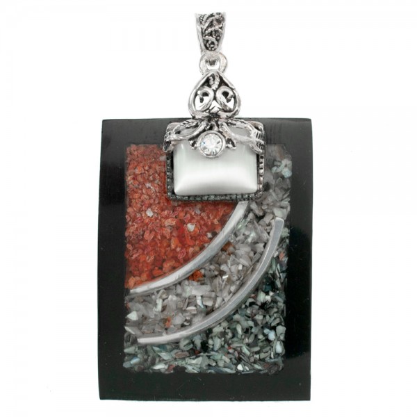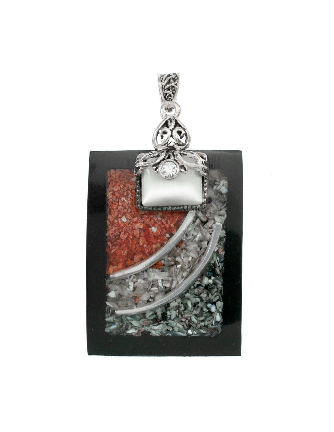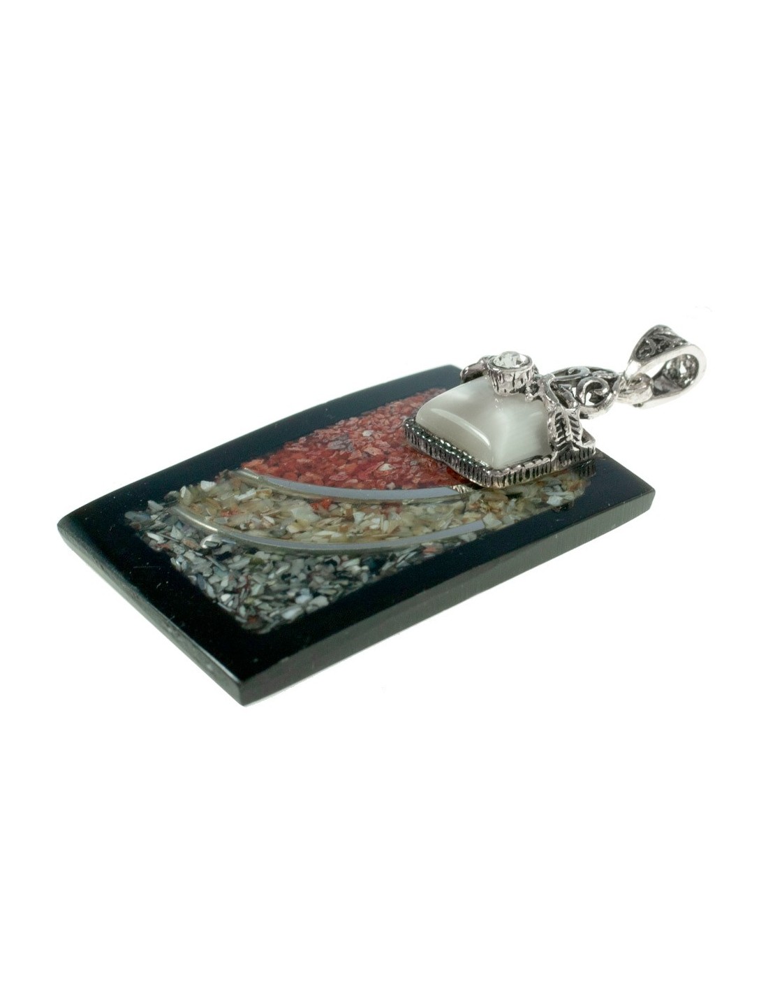 Colgante rectángulo ojo de gato & resina Plata de Ley 925.
