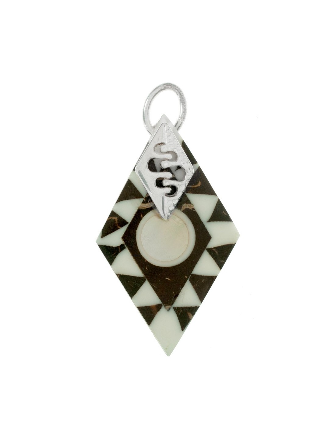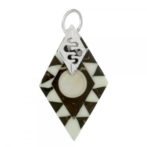 Colgante rombo de nácar & coco y Plata de Ley 925.