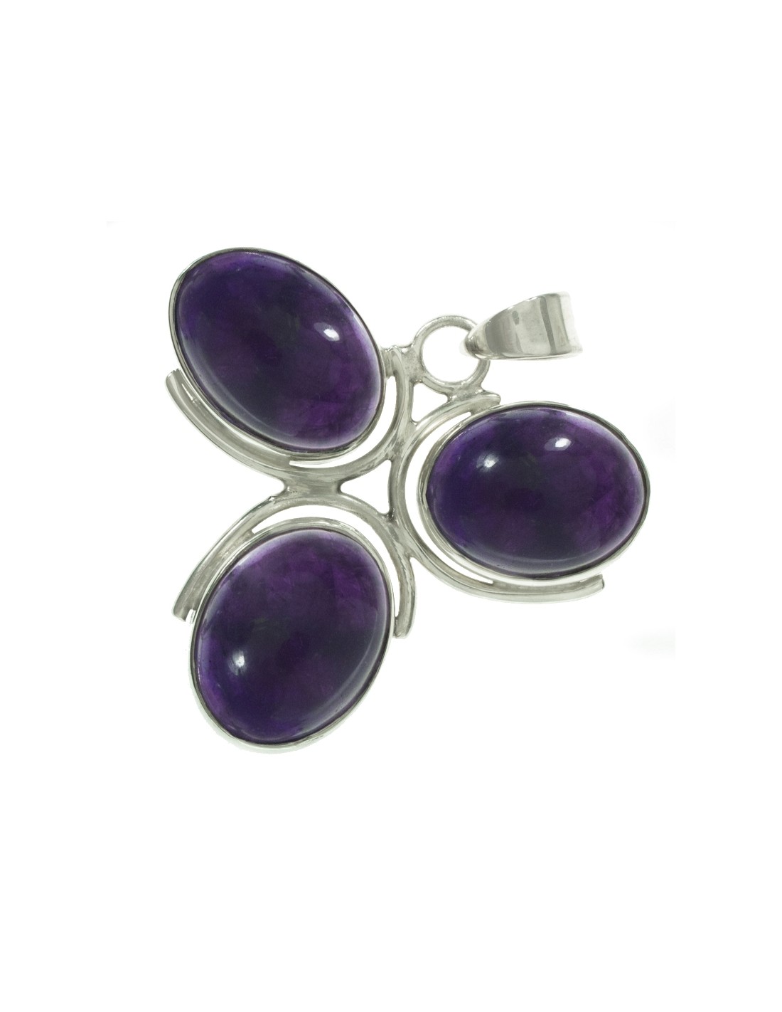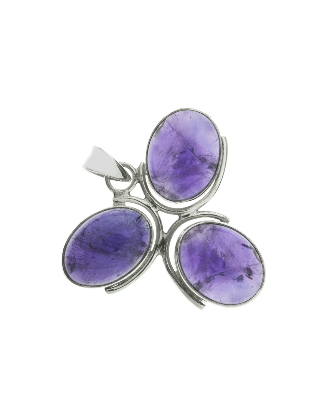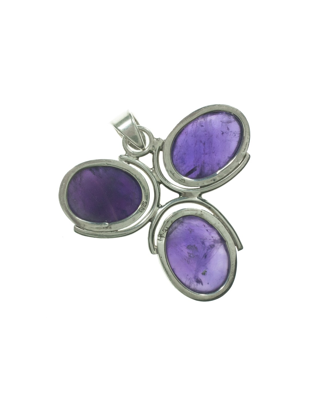 Colgante con triple amatista de gran tamaño, forma ovalada, base y drop de Plata de Ley 925