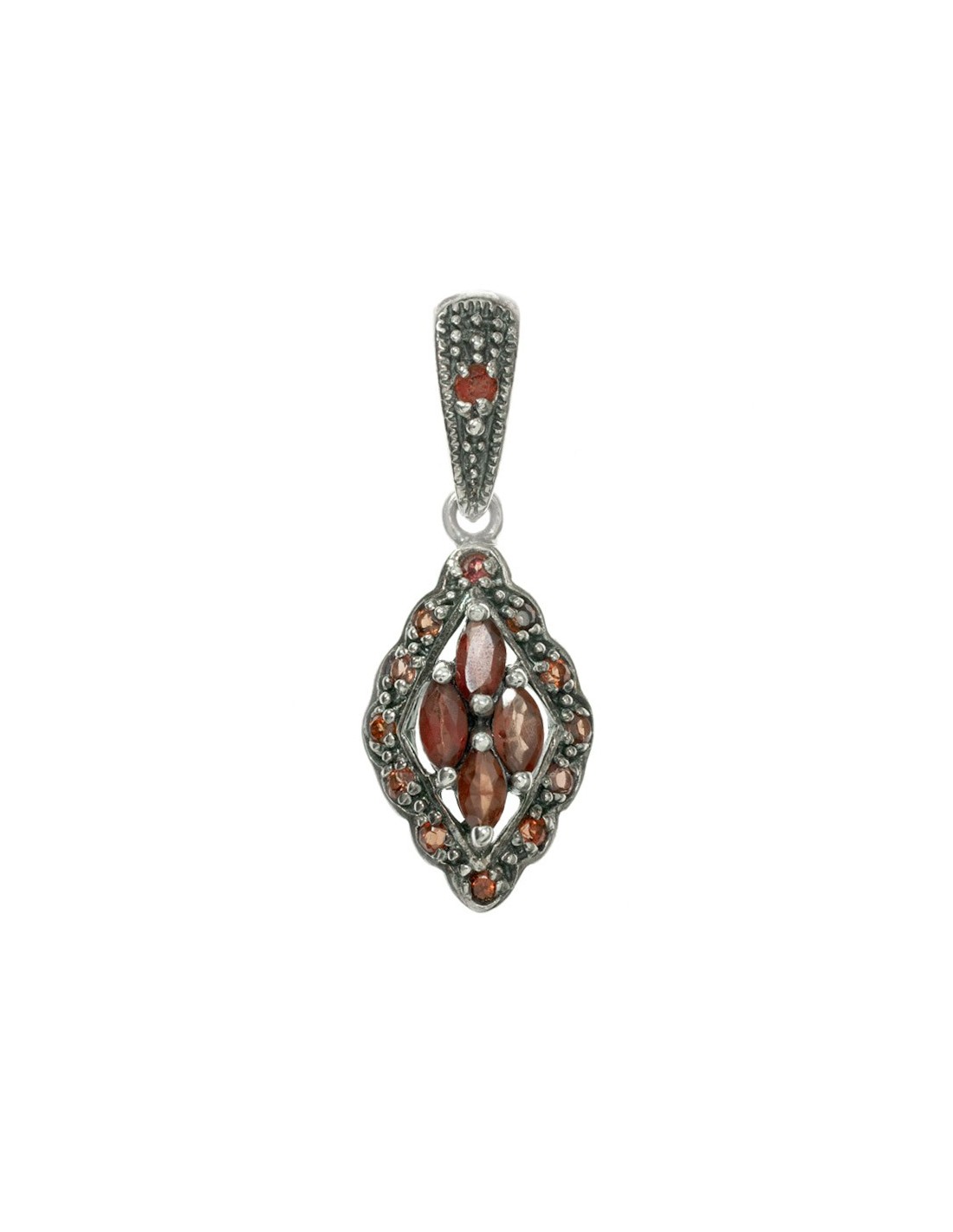 Colgante de estilo vintage con diseño de rombo con granates engarzados, fabricado en Plata de Ley 925 con acabado de plata vieja.