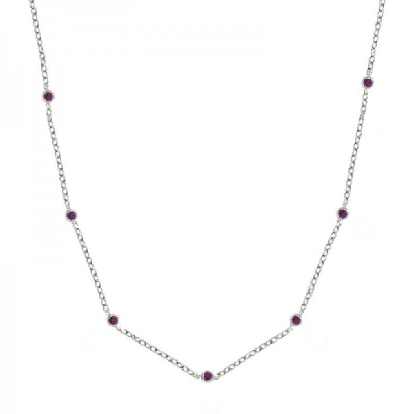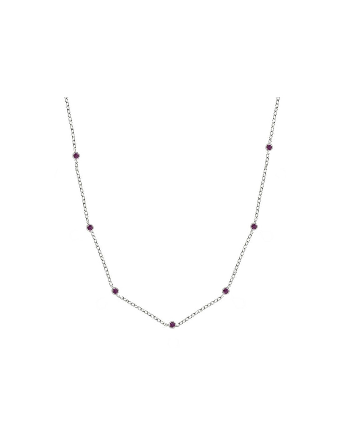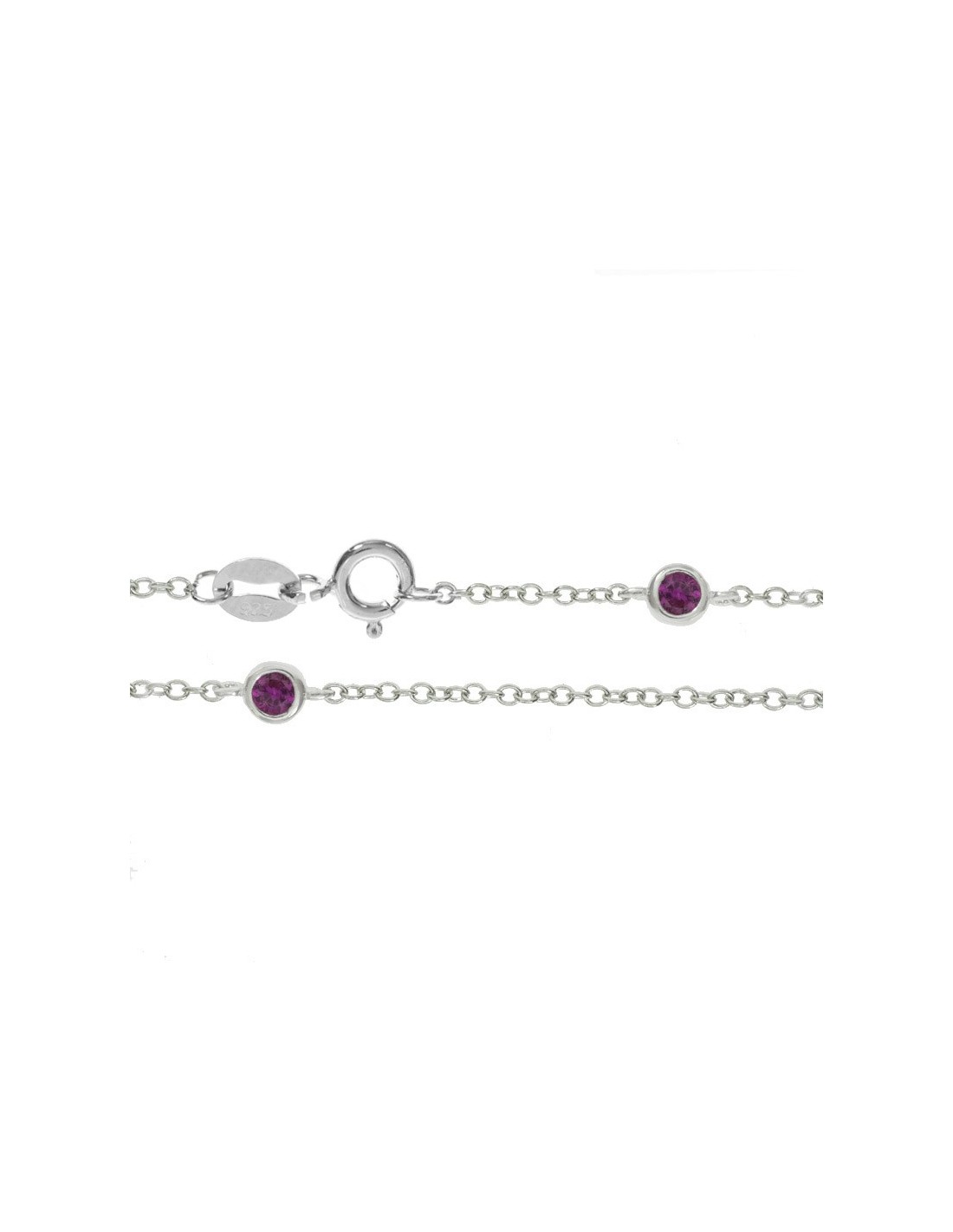 Collar ajustable con 12 circonitas intercaladas fabricado en Plata de Ley. Disponible en color rosa claro y rosa fucsia.